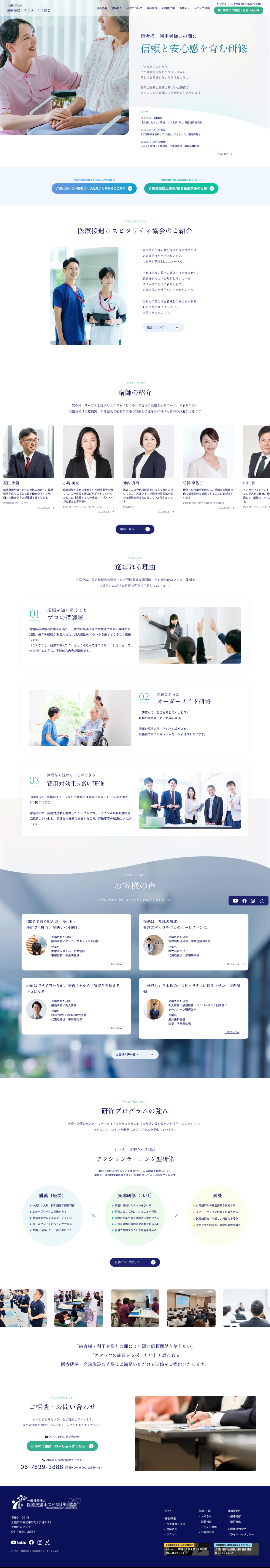 大阪を拠点に全国の医療機関・介護施設を中心に医療接遇の研修を行う協会:医療接遇ホスピタリティ協会様のコーポレートサイトのリニューアルを行いました。
