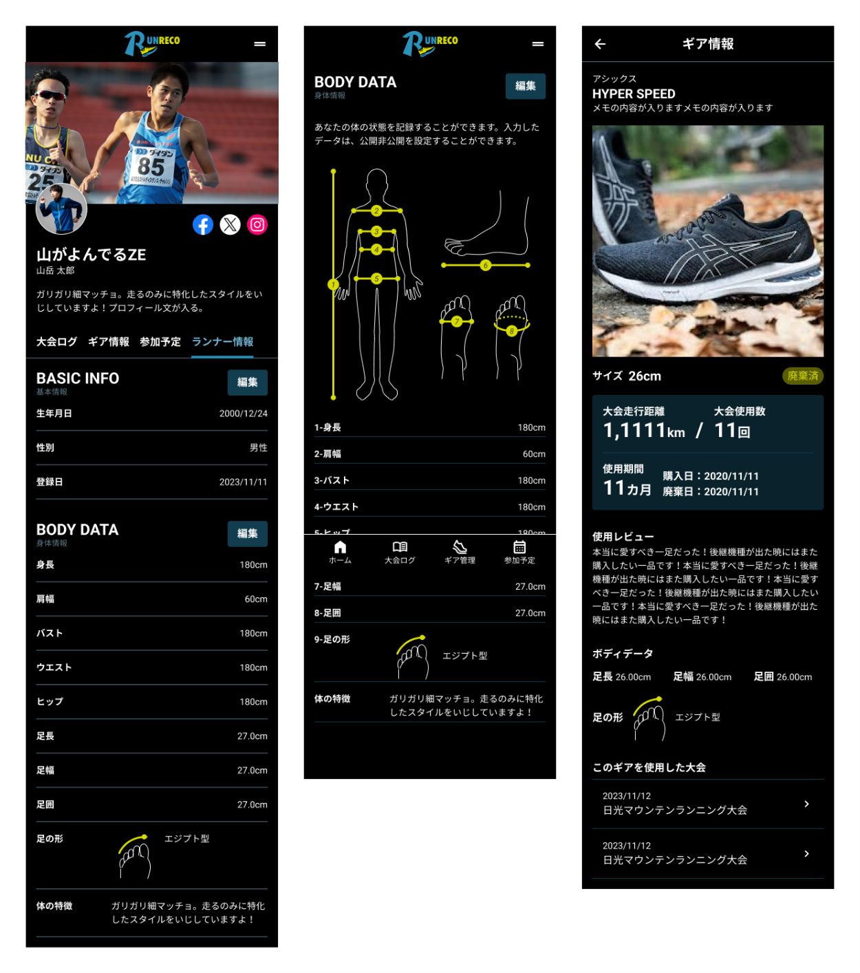 ランナー向けアプリRUNRECO(ランレコ)の企画から、UI/UX作成まで携わりました。現在も随時アップデート中。iOS/Android対応。