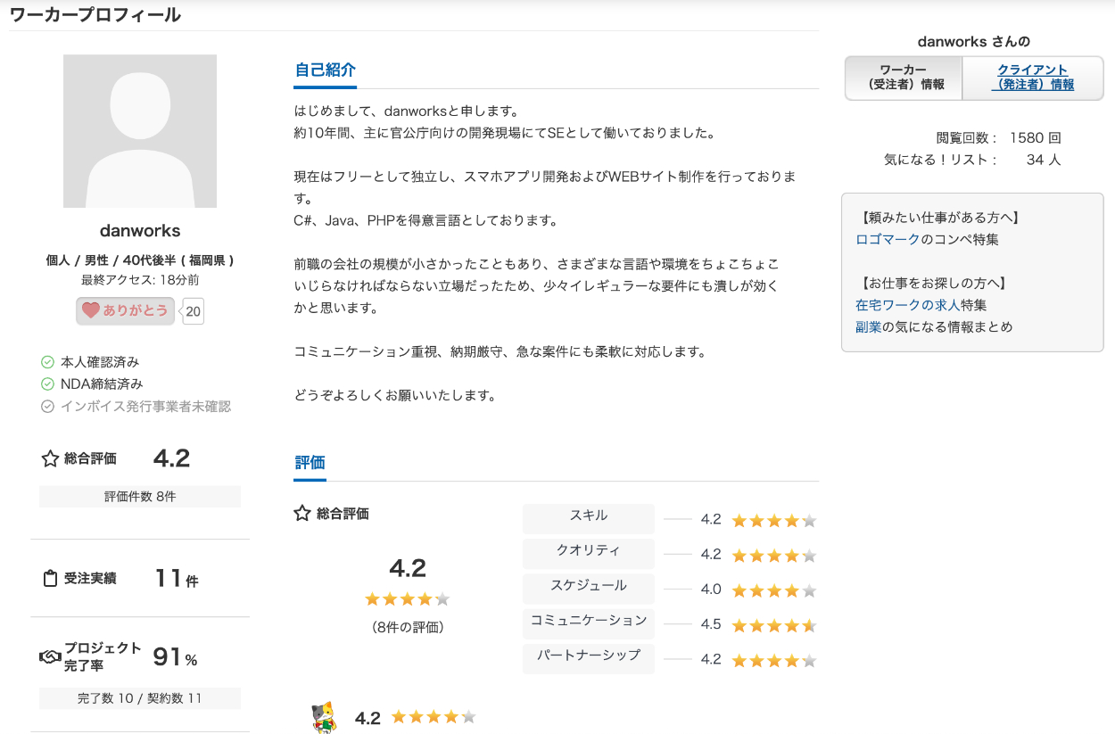 クラウドワークス受注実績 danworks フリーランス | システムエンジニア OVERVIEW クラウドソーシングサービス「クラウドワークス」での受注実績です。 ※2025年10月現在、契約1件継続中。 プロフィールURL ⬇️