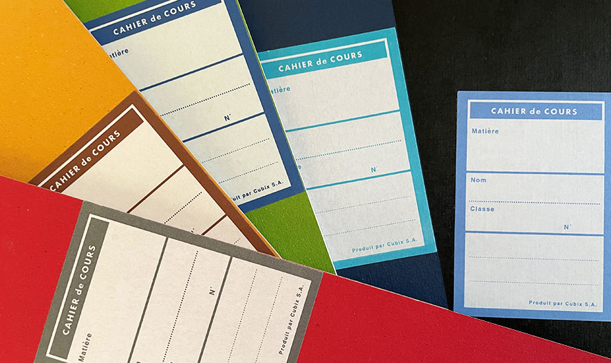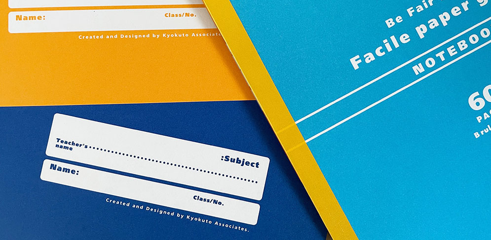 多色展開だけでなく、学校で教科別で対応できるよう、Subject(科目)、Teacher's name(担当教師)、Name(名前)、Class/No(クラス・ナンバー)が簡単に書き込めるブランクスペースを設けた実用的なデザインになっている。