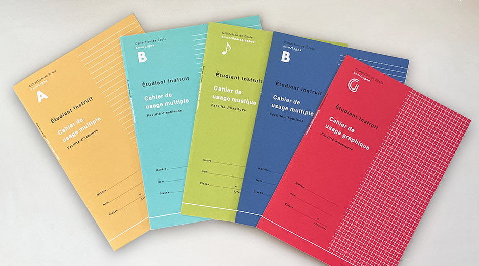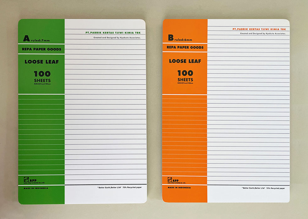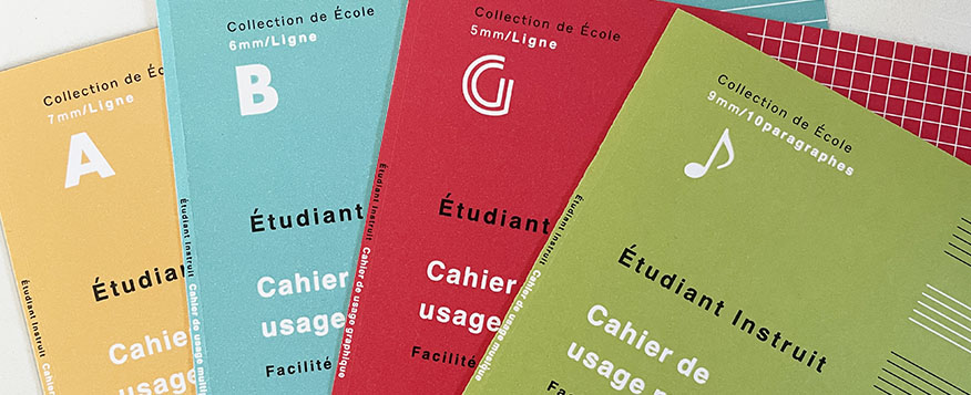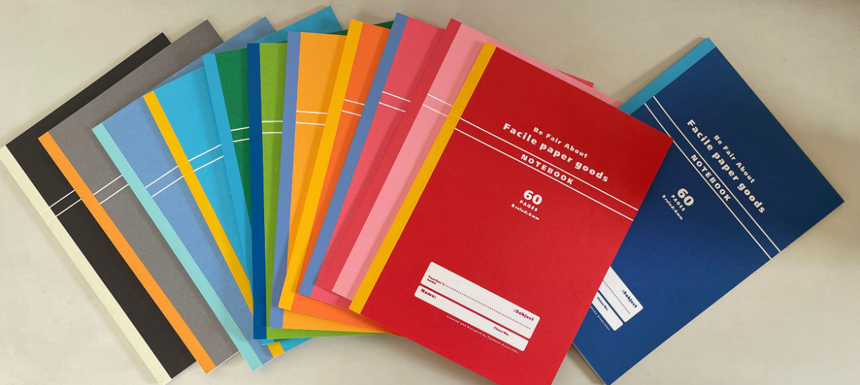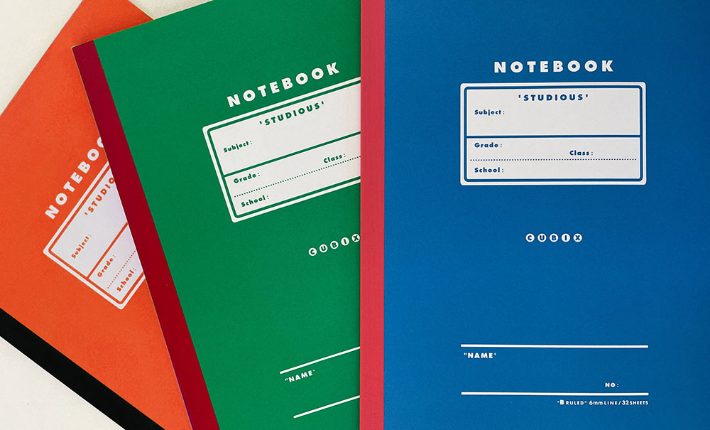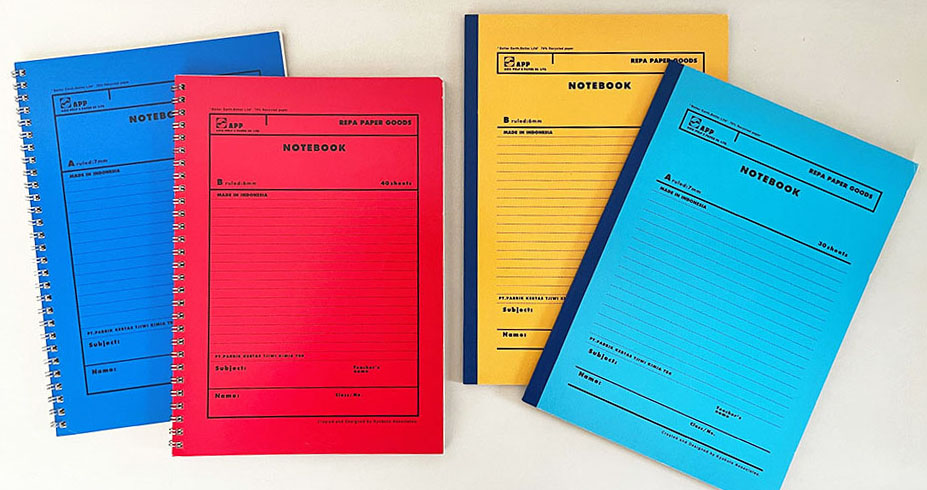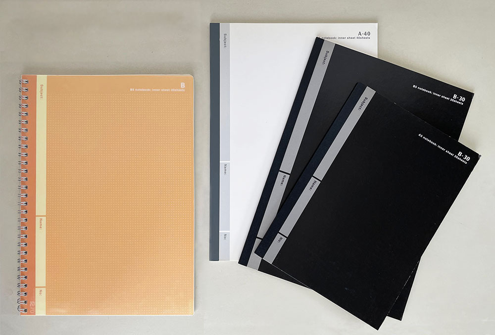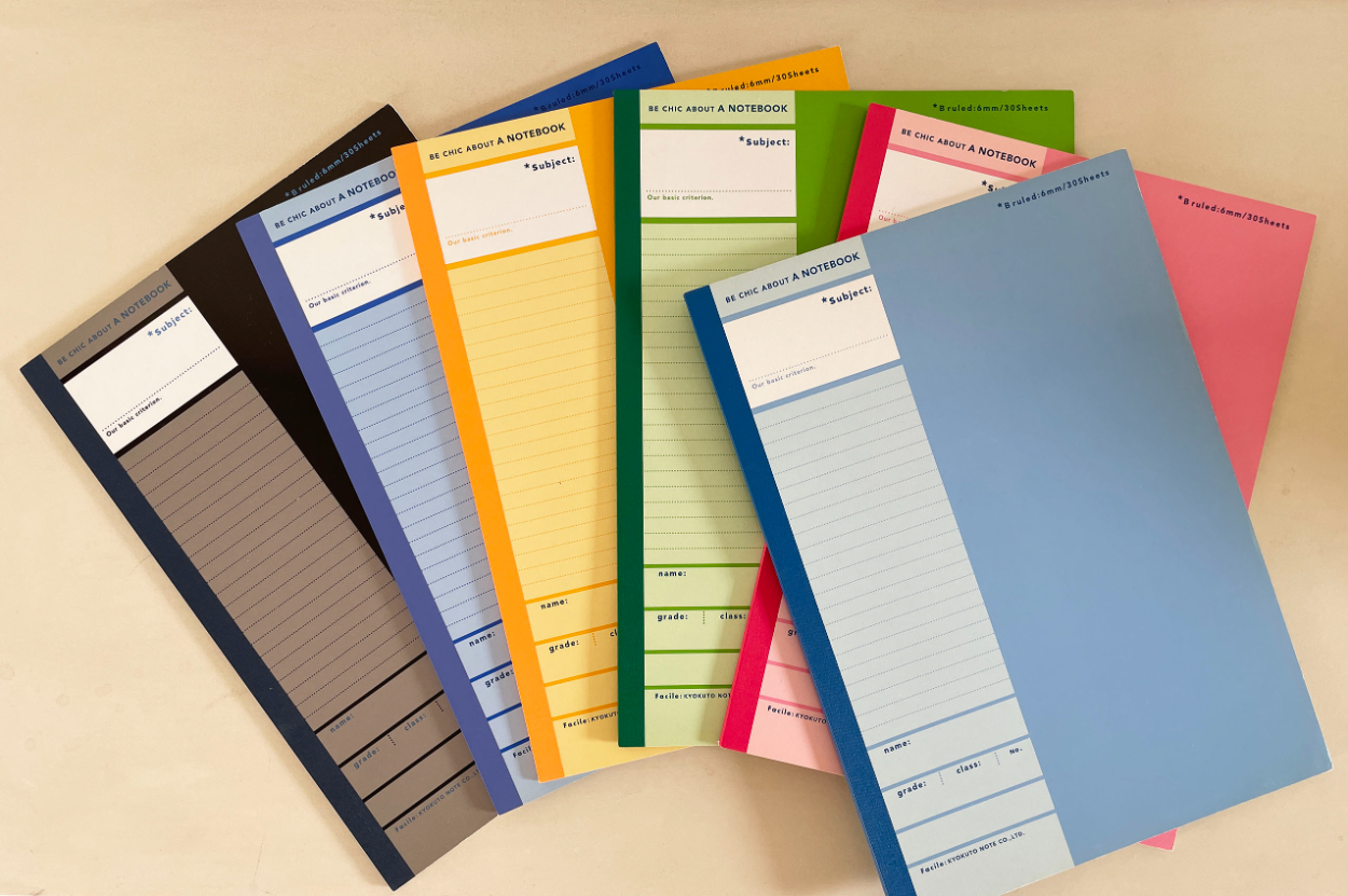 本文の罫線を使用目的別に4種にカテゴリーしたノートシリーズ。従来の大学ノートや学習帳のようなものではなく、カラフルな輸入雑貨や海外のスクールノートをイメージしており、罫内容が一目でわかる表紙のロゴと罫線がデザインのポイントになっている。