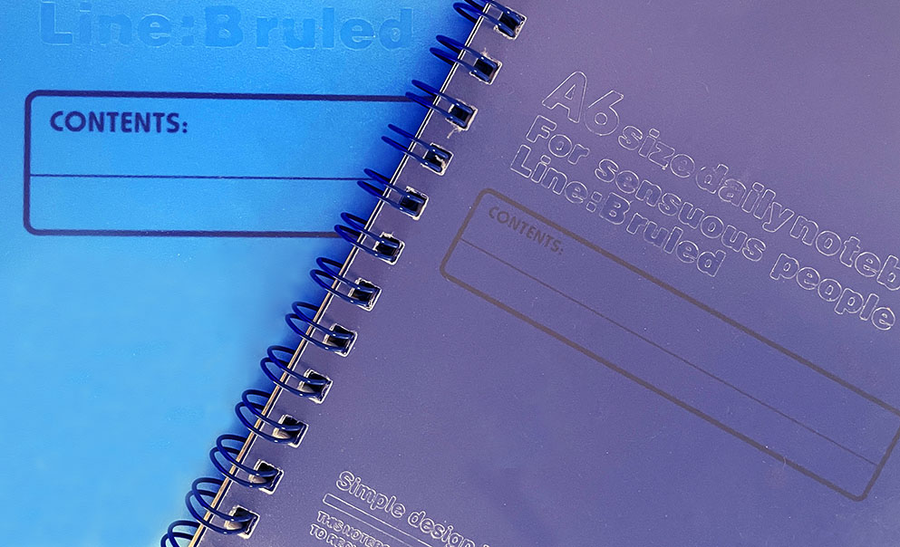 PP表紙にはあえてプリントはせず、型押し加工を採用。表紙の素材感が引き立つデザインと新しさ、PP素材にだからできるシンプルなデザインにこだわった。