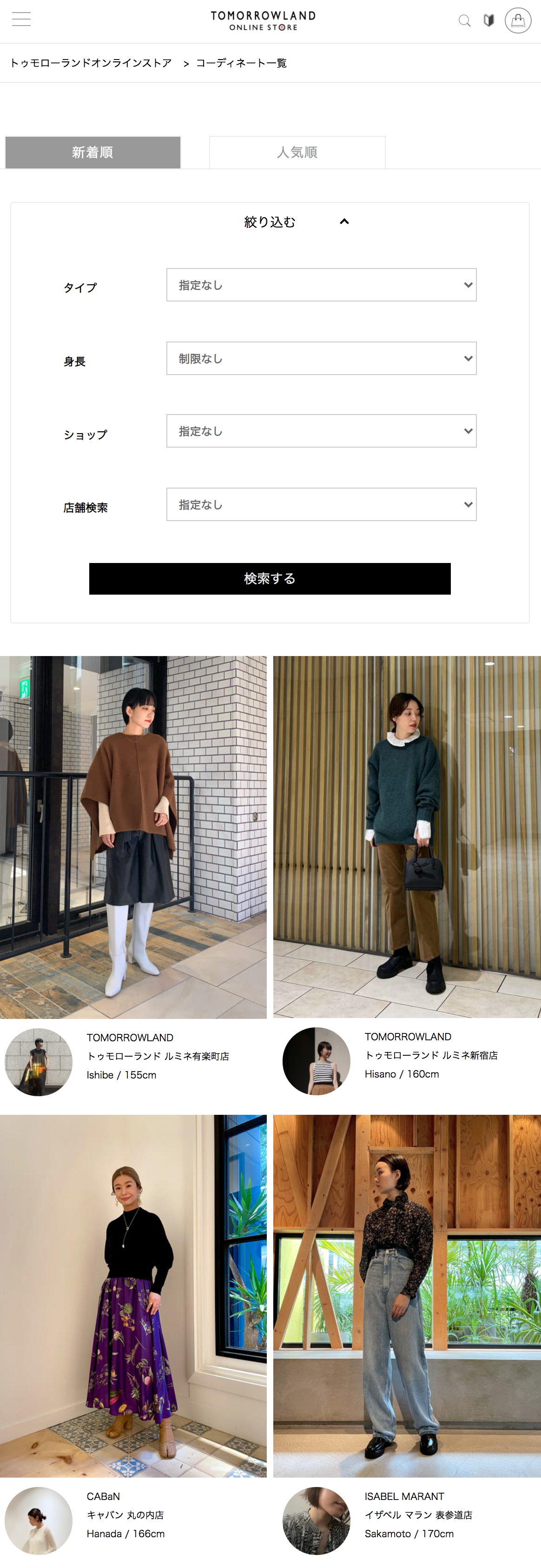 - コーディネート一覧ページ(デザイン・コーディング)https://store.tomorrowland.co.jp/coordinate/list