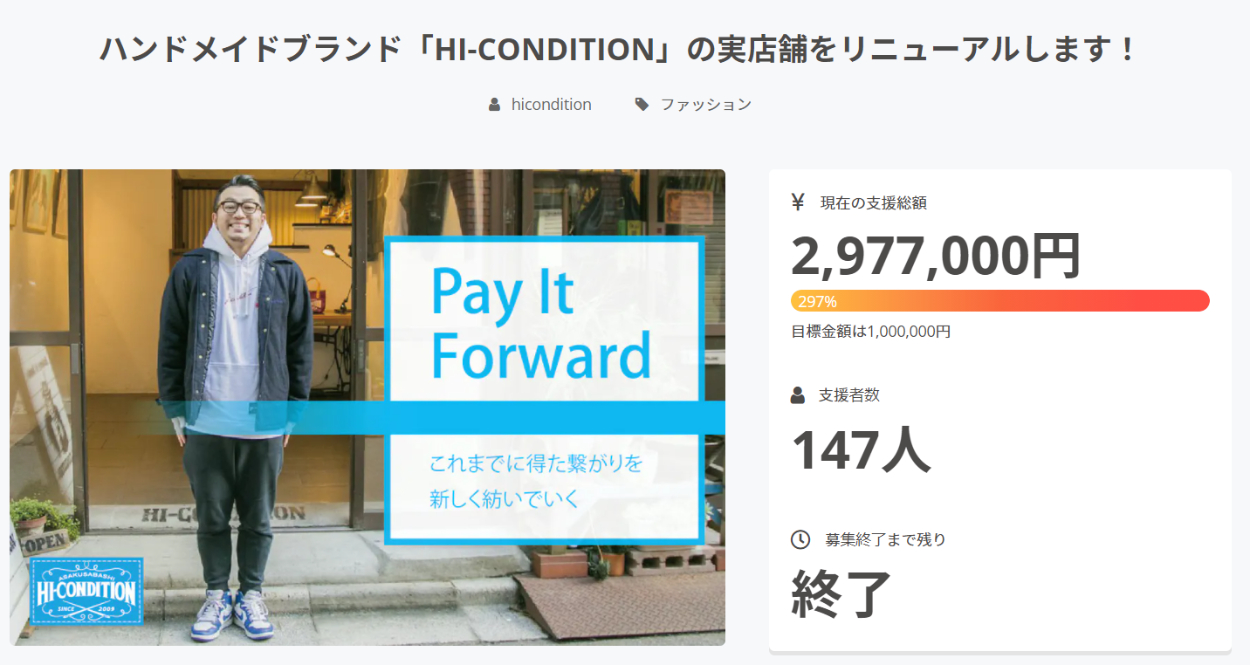 個人でハンドメイドブランドを展開する「HI-CONDITION様」が実施した新店舗開店に向けたクラウドファンディングを実施した際のページ内文章のライティングおよび全体ディレクションを担当しました。