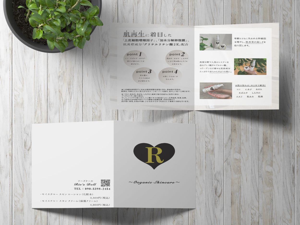 化粧品のパンフレットデザイン isawa_design フリーランスWebデザイナー OVERVIEW 化粧品のパンフレットデザインを制作しました。 余白を大きくして視認性を高め、ベージュの色合いで女性らしい雰囲気を出しています。