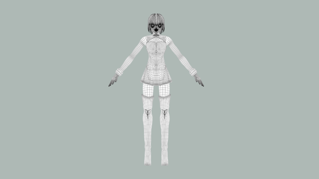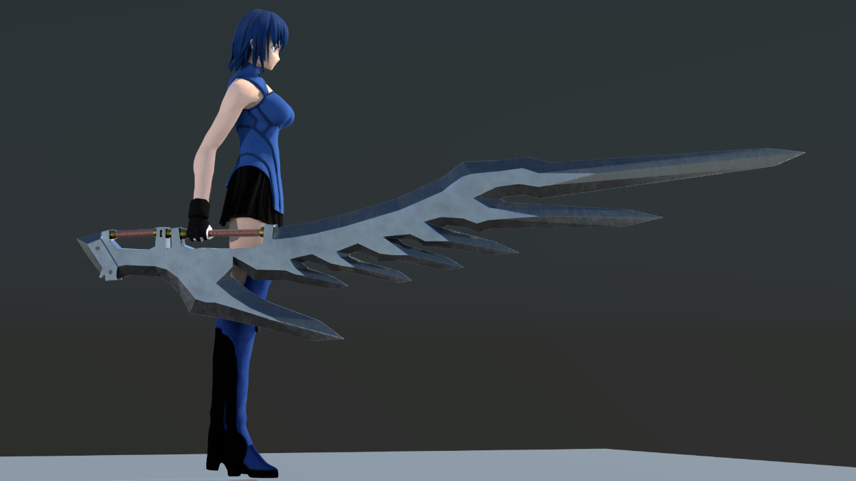 シエル(月姫リメイク)3DCGモデル 大城 徹人(オオギ テツヒト) 3dcgモデラー志望 OVERVIEW 使用ソフト:maya,zbrush,substancepainter,phoshop YEAR 2022 顔アップ体と武器(大剣)ワイヤーフレームリグ(mixamoで自動生成後、ポージング調整)
