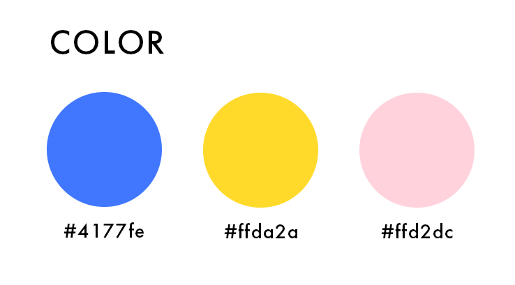 ・ポップで楽しい雰囲気になるよう、明度・彩度が高い青色と黄色を使用し、砂浜は波の青色とのコントラストがハッキリするよう明るくライトなピンクを使用しています。