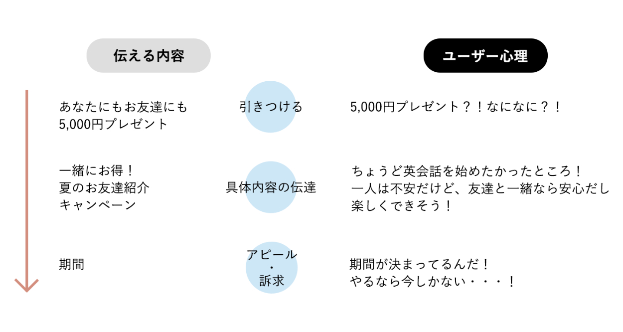要件を参考にバナーで伝える情報とユーザー心理をまとめ、ユーザーストーリーを明確にしました。