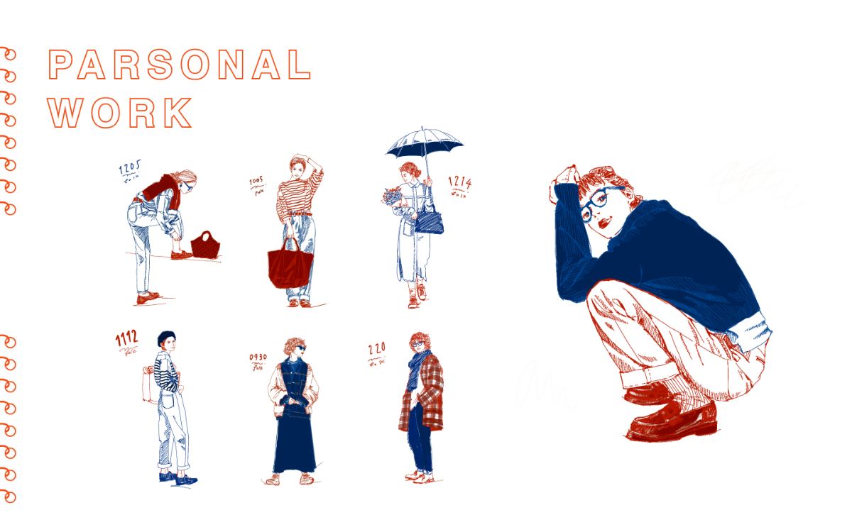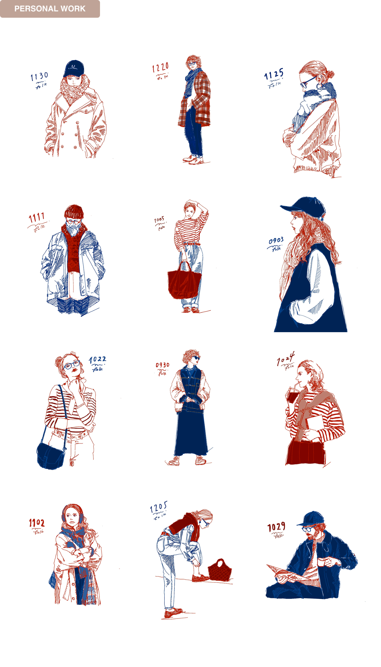SHElikesプロデザイナーコース受講期間中の4ヶ月間、「自分は何をしたいのか」を見失わないために、毎日1枚イラストを描き、計135枚を制作した個人制作・習作プロジェクト。 手描き表現と感覚的なバランス感覚を保つための継続的な習作。(2025年8月〜12月)