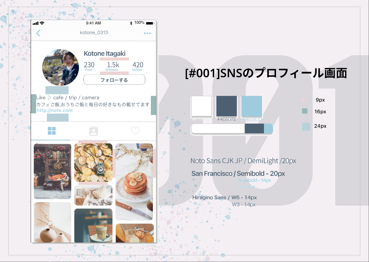 ・ターゲットの好みがきれいめ、パステルなので淡い色で、色数も抑える