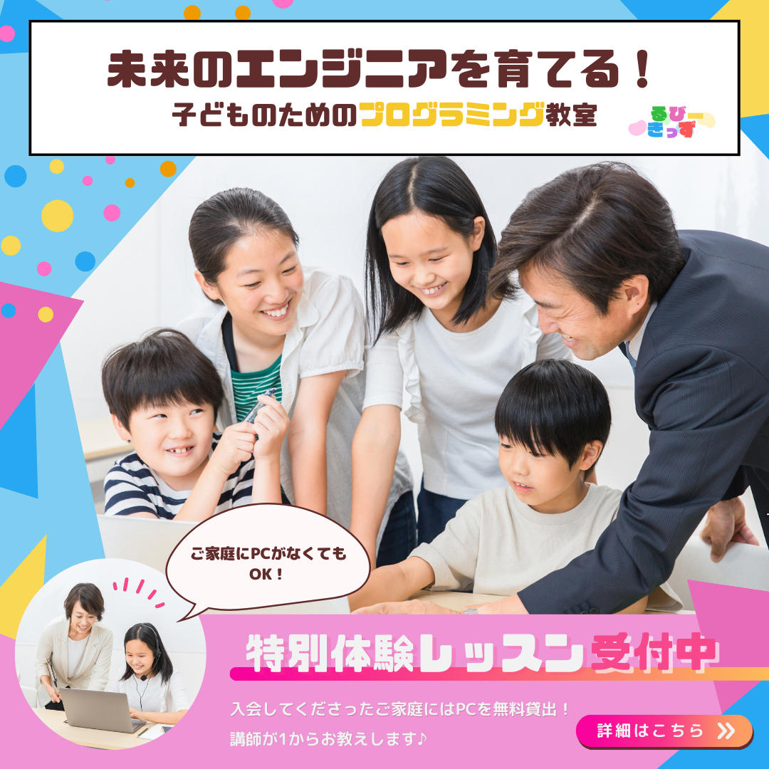 【詳細】架空のプログラミング教室の体験会誘導バナー。