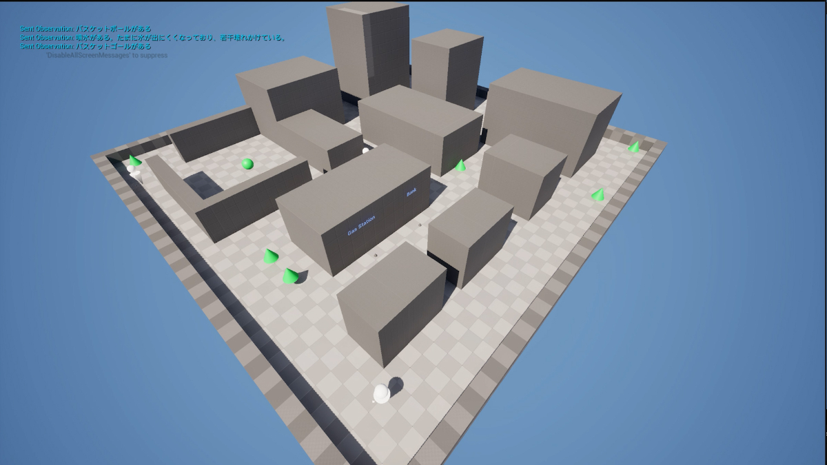CG空間で、周囲の情報をキャッチしその情報を下にAIが目的を生成する、『オブジェクティブ』と呼ばれる目的生成機能のデモ映像です。