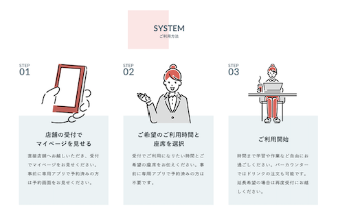 ①どういう場所なのか視覚的に理解し、コンセプトに共感する(FV、コンセプト) ②具体的な利用イメージを持つ(特徴、アメニティ) ③どのように利用できるのか知る(利用方法)