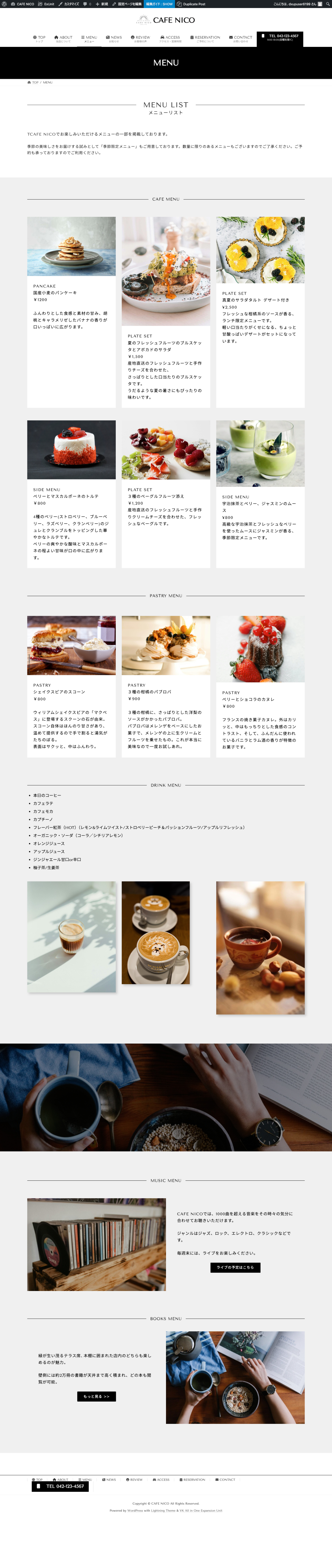 OVERVIEW DX UPの実践課題として、CAFE NICO(架空)のWebサイトを制作しました。要件定義から情報設計、デザイン制作、実装、WordPress制作まで行い、サイト公開までの一連の流れを実践しました。【制作期間:デザイン2週間、コーディング等1週間】