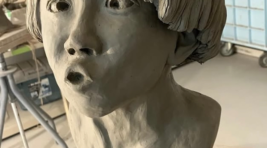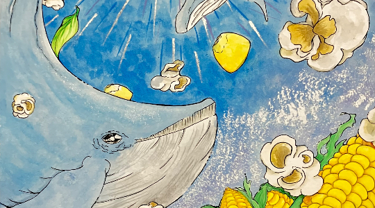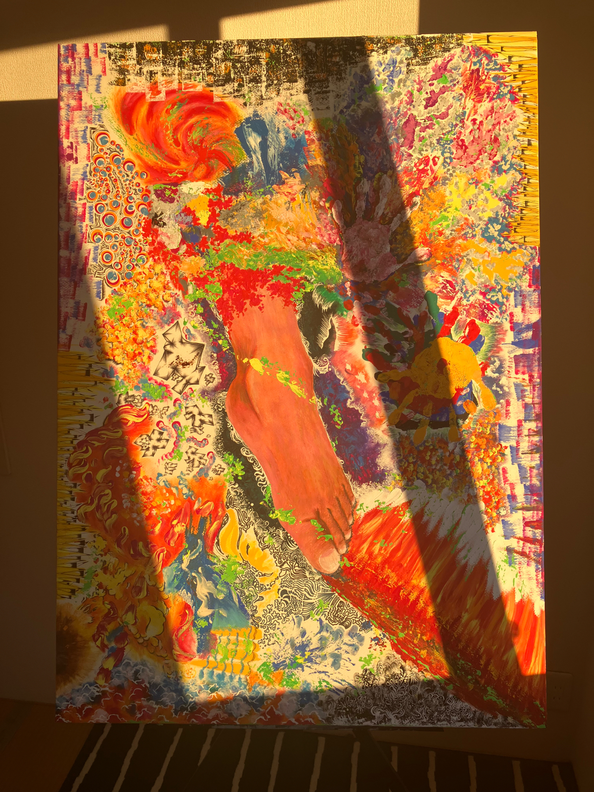 主にアクリルガッシュで指や定規等、筆以外のものを多く使用して描いた。
