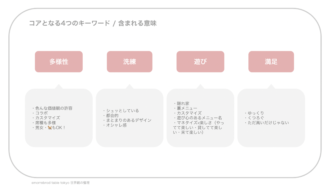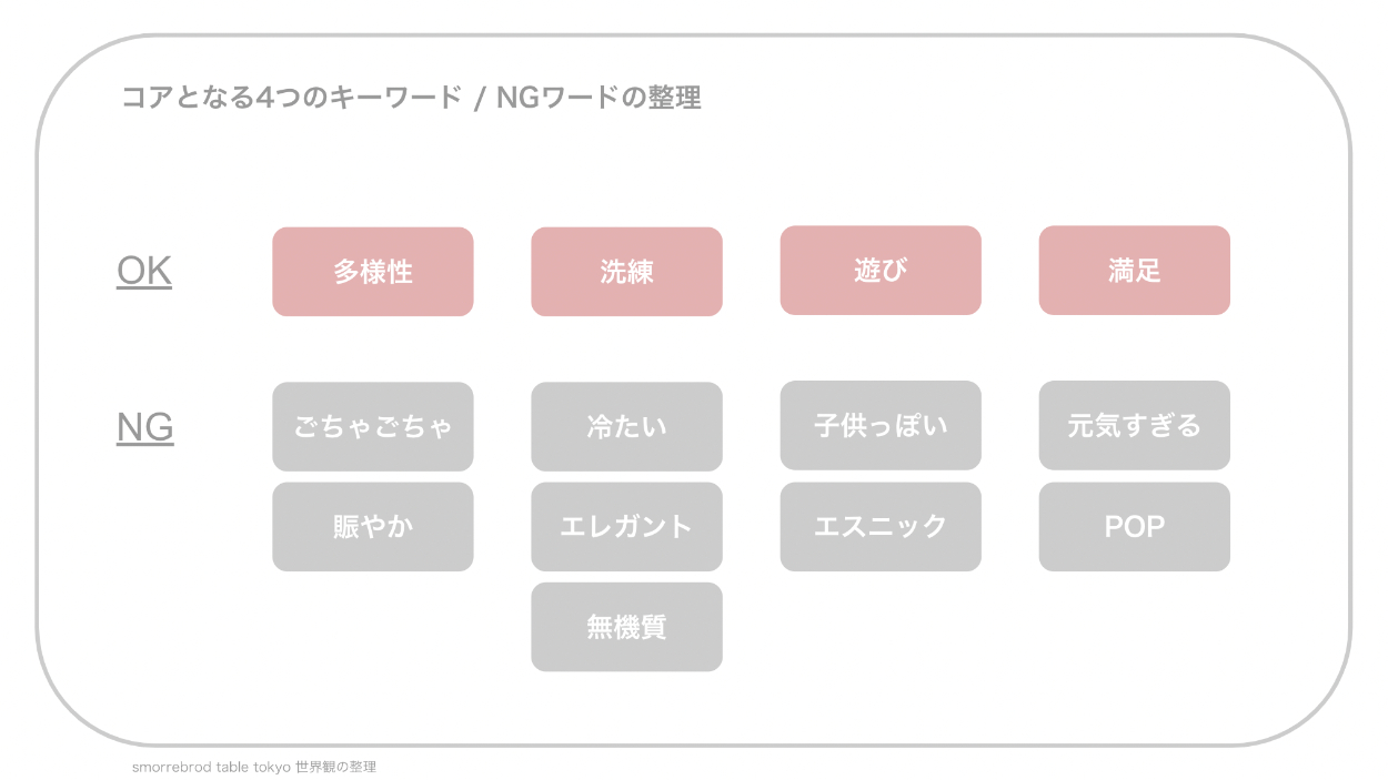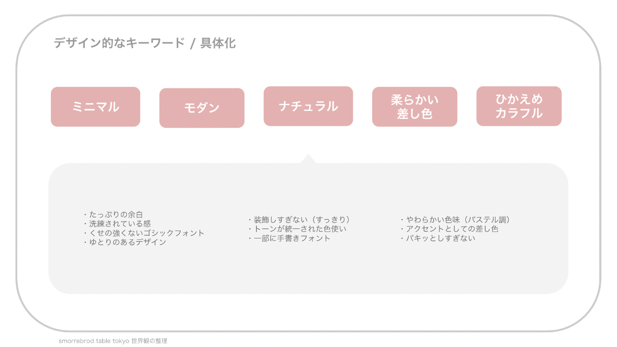ブランドアイデンティティであるロゴを制作する上で、コンセプトや世界観の整理が大切であると考えているため、下準備として、コンセプトや世界観の整理を丁寧におこないました。