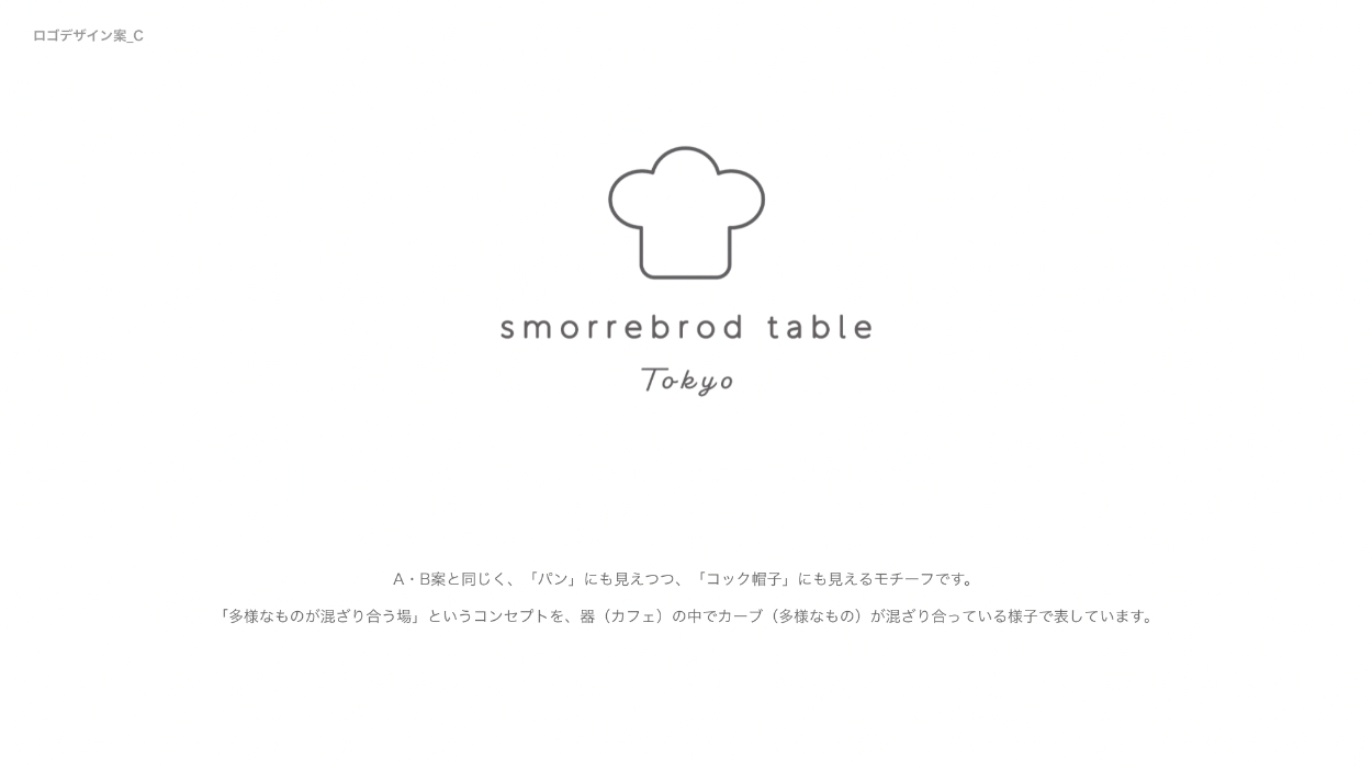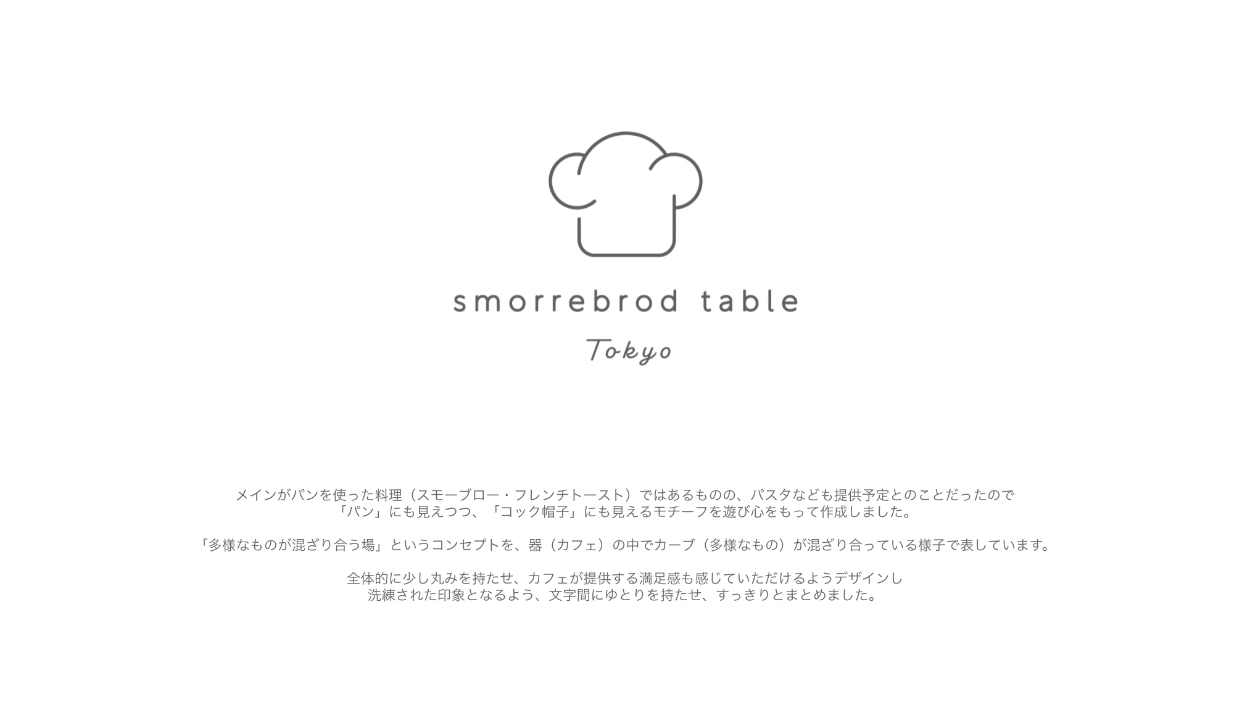 その上で、カフェの形態として、メインがパンを使った料理ではあるものの、パスタなども広く提供予定で、場のコンセプトとしては「多様なものが混ざり合う場」ということだったので、「パン」にも見えつつ「コック帽」にも見えて、「多様なものが混ざり合っている様子」をモチーフで表現できたらと考え、様々なモチーフを模索しました。