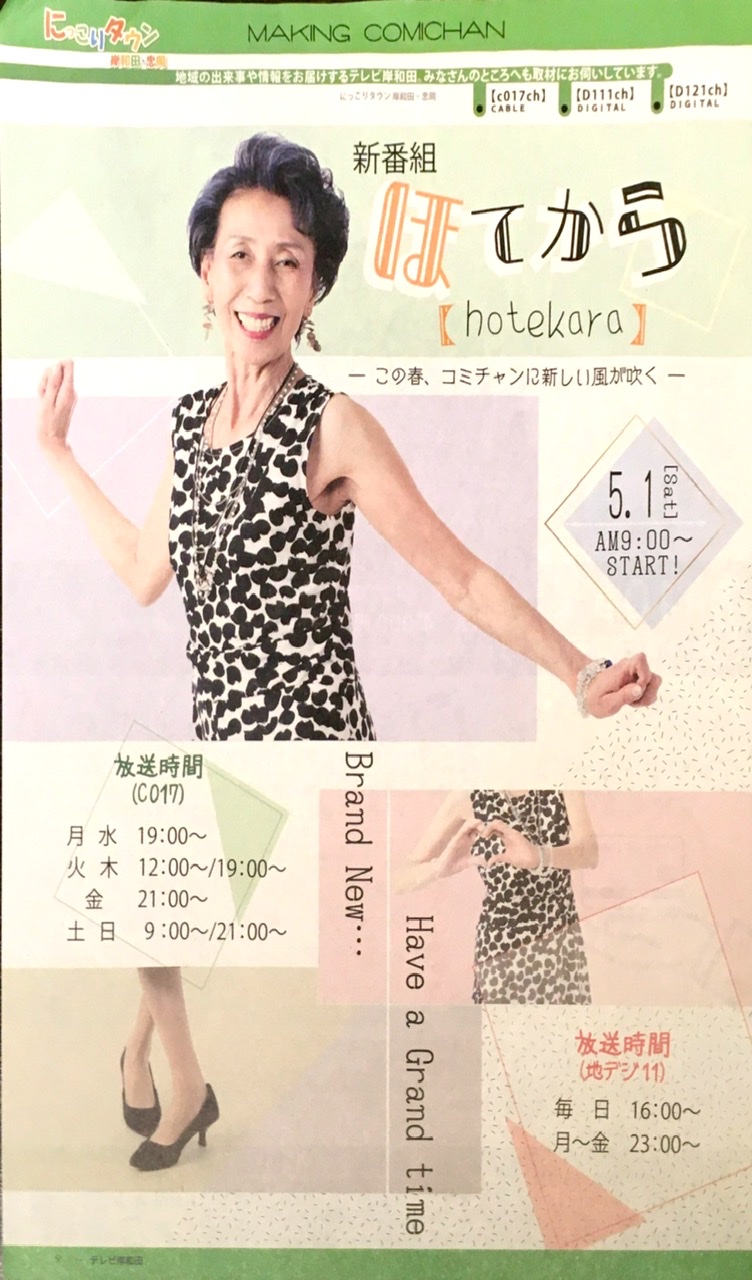 2年ぶりの自社制作の新レギュラー番組の前月号の告知。企業スポンサーの意向で、地元から愛される女性向け番組を制作し、スポンサーのイメージアップや地元の方からの認知度をさらに高める目的もあり、『華やかで明るく、でも全世代の女性に親しみを持ってもらえる番組』をコンセプトに作られたため、女性雑誌風の爽やかなイメージでデザイン・編集しました。