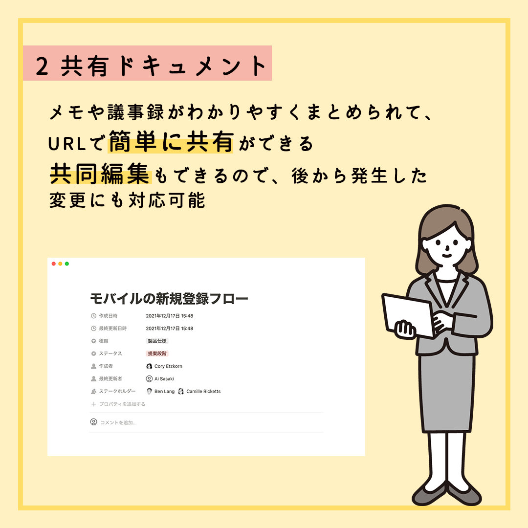 背景の色、枠線、フォント、フォントカラーは指定があり、文字の下に黄色を敷くことで目立たせたい部分を強調させました。