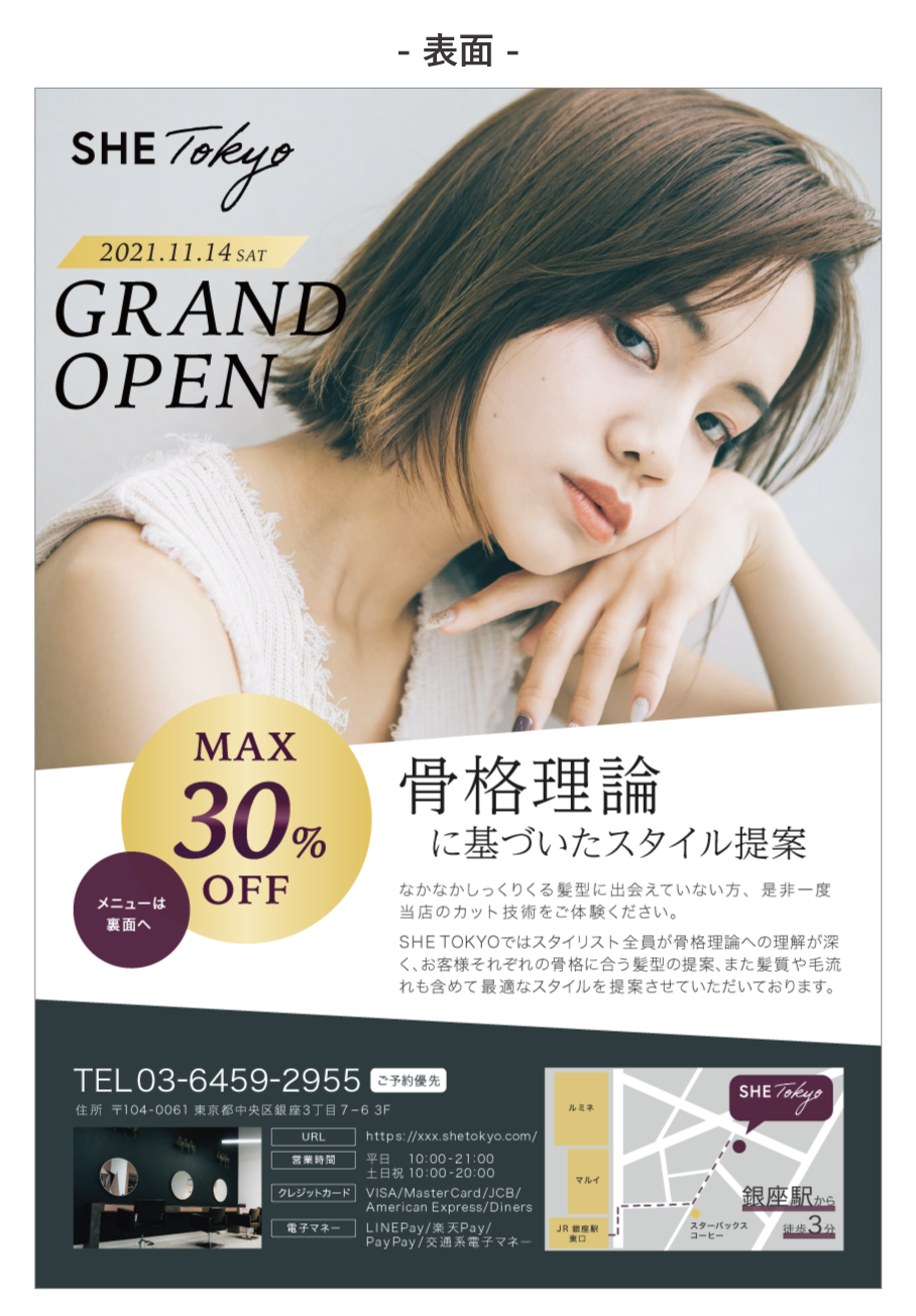 新規オープンしたため、ポスティング用のフライヤーを制作してほしい。