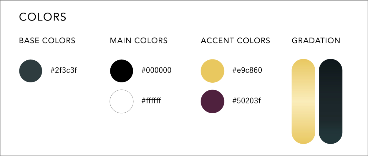 高級感のあるシンプルでモダンなカッコいい雰囲気を出すために紫とゴールドやグラデーションを用いました。
