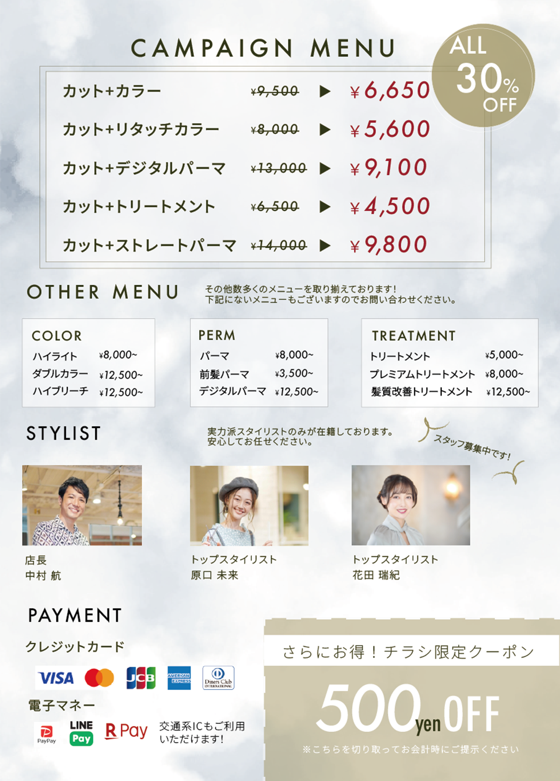 裏面は表面で興味を持っていただいた方が知りたいお得感のある金額情報を目立たせて掲載する反面、高級感のあるイメージを崩さないように設計しました。