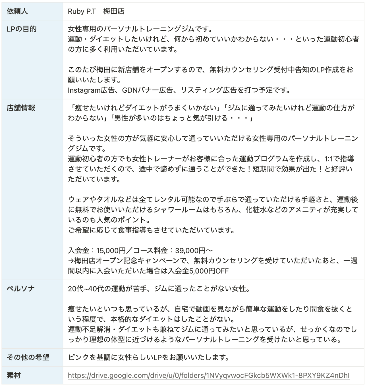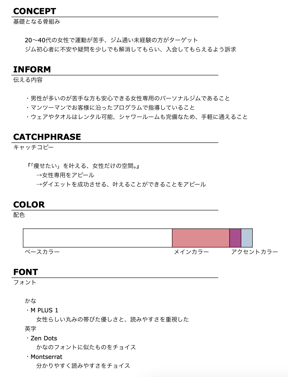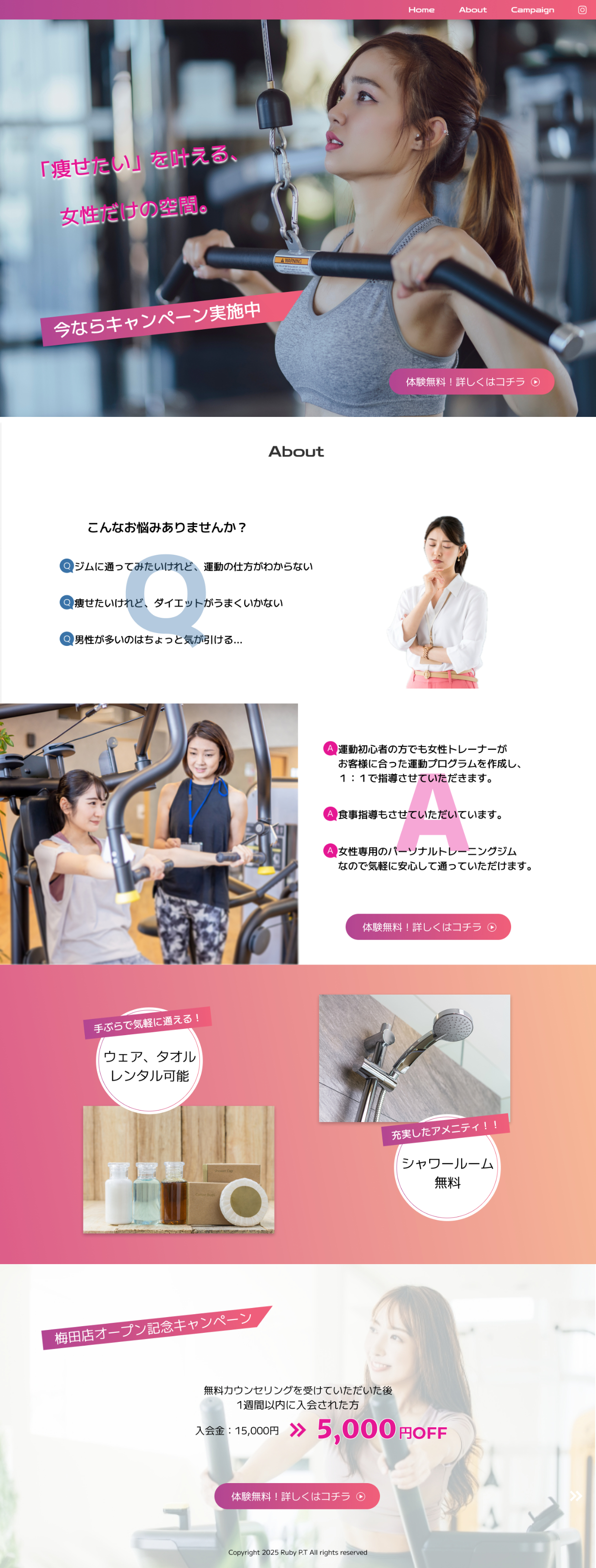 【習作】女性専用パーソナルトレーニングジムのLPデザインカンプ