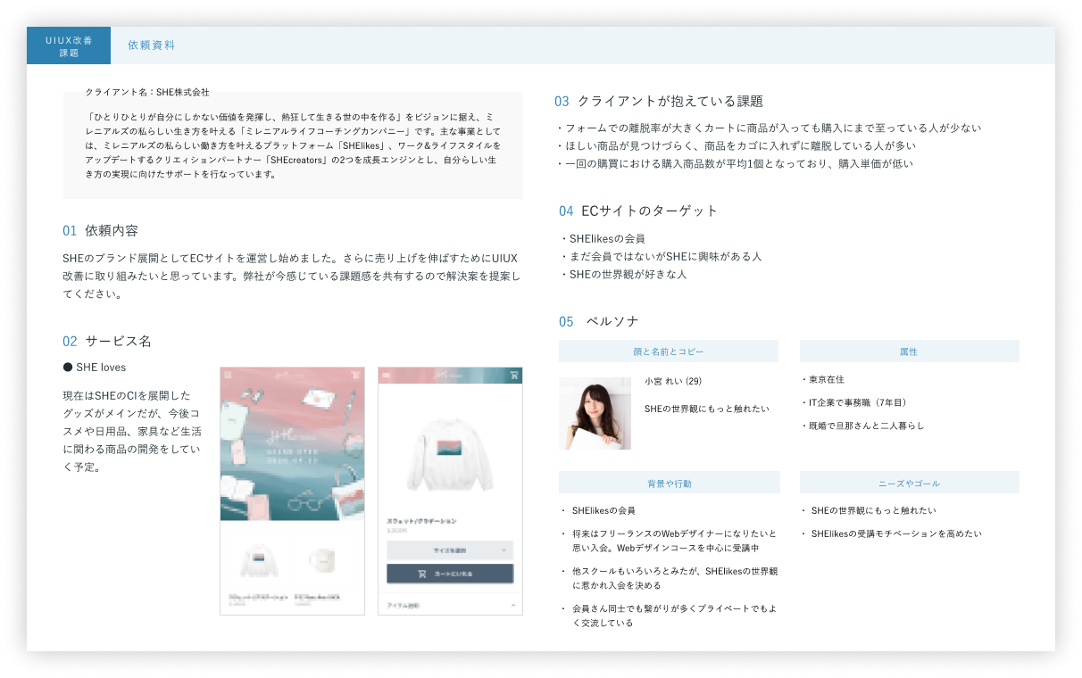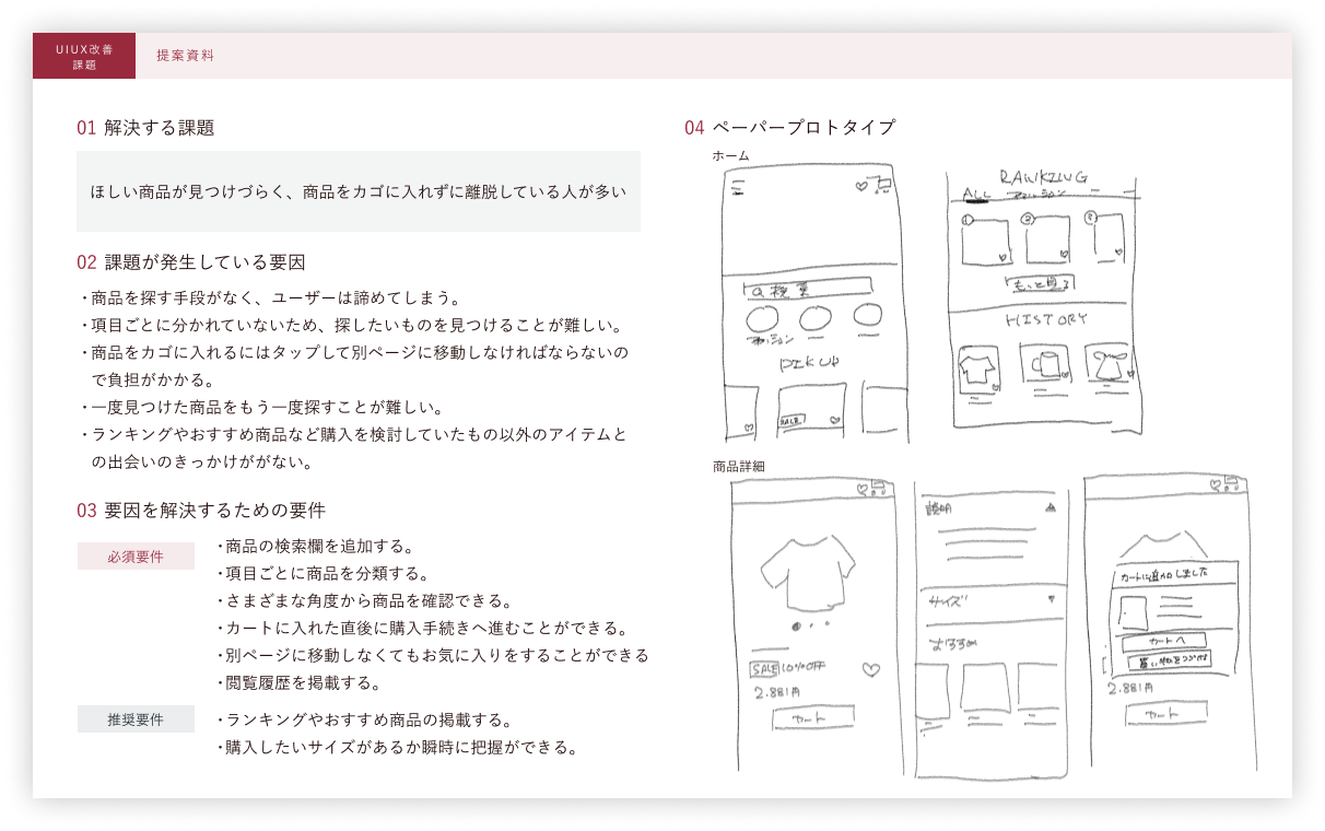 既存のEC通販サイトにおいてクライアントが感じている課題を改善する。