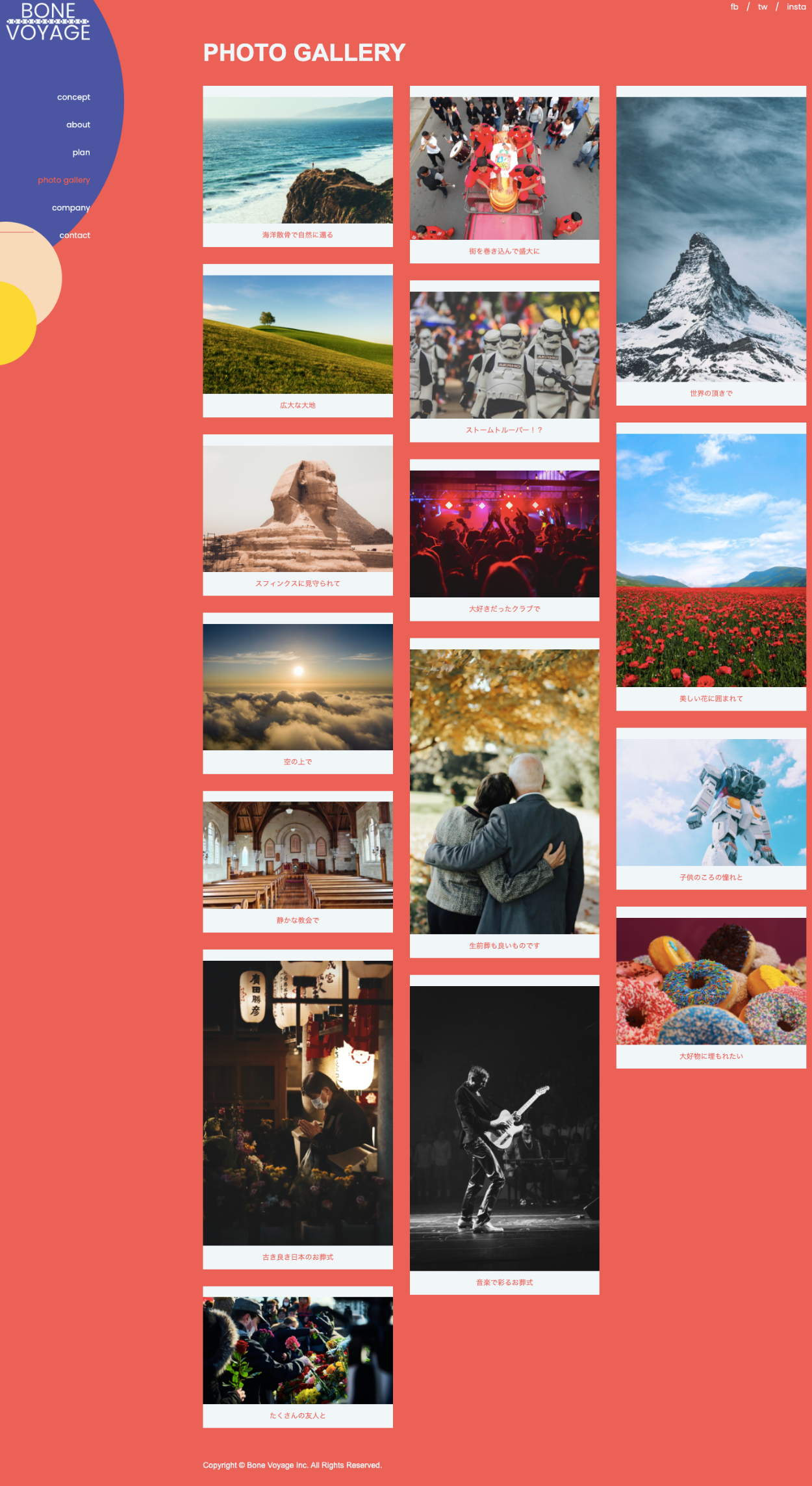 スクールのグループ制作課題。クライアントからの要望に沿って制作を進めました。自身はトップページと、フォトギャラリーページを担当。(完成:2021年9月8日、制作時間:60時間)