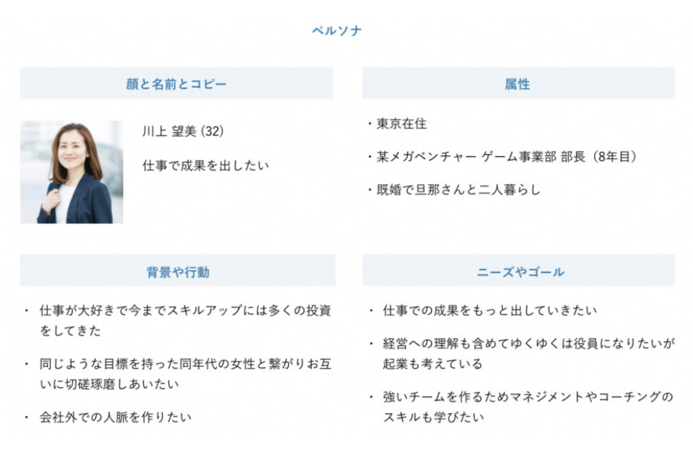 女性向けのビジネススクールを展開している。会員は20~30代の女性が多く、キャリアアップのためにビジネススキルを学び、さらにそのアウトプットの場として定期的にビジネスコンテストなどのイベントも 開催されている。
