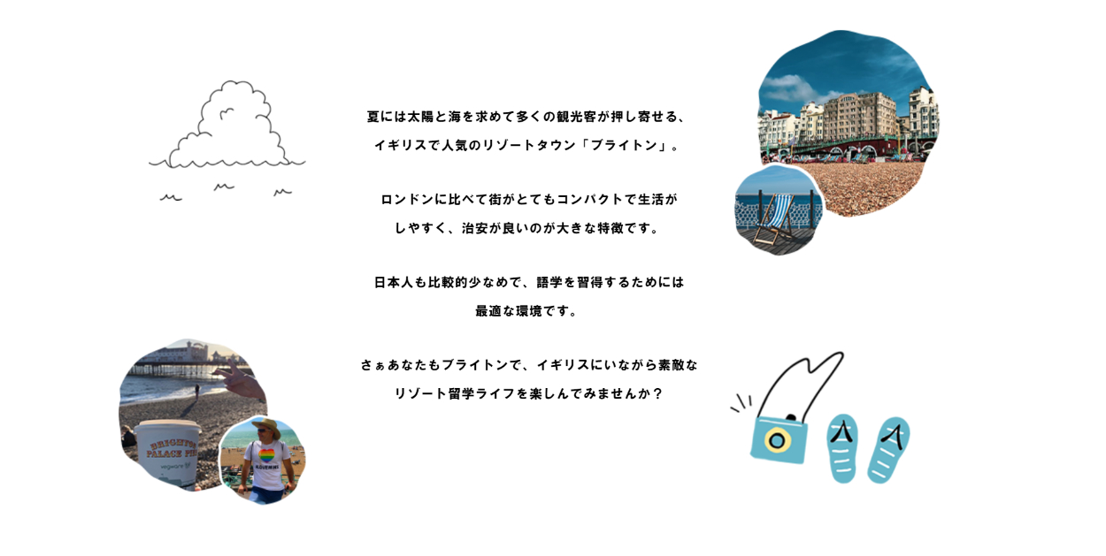 ブライトンはどんな場所で、どんな魅力があるのかをきちんと伝えるべきだと考えていました。なので、一般的な留学エージェントのサイトにあるような学校情報やプランをたくさんのせるというよりかは、やや旅行サイトよりな感じで「ここに行きたい!」と思わせることを意識し、でも観光情報だらけではない、留学の魅力をきちんと伝えられるハイブリッド型のサイトに仕上げました。