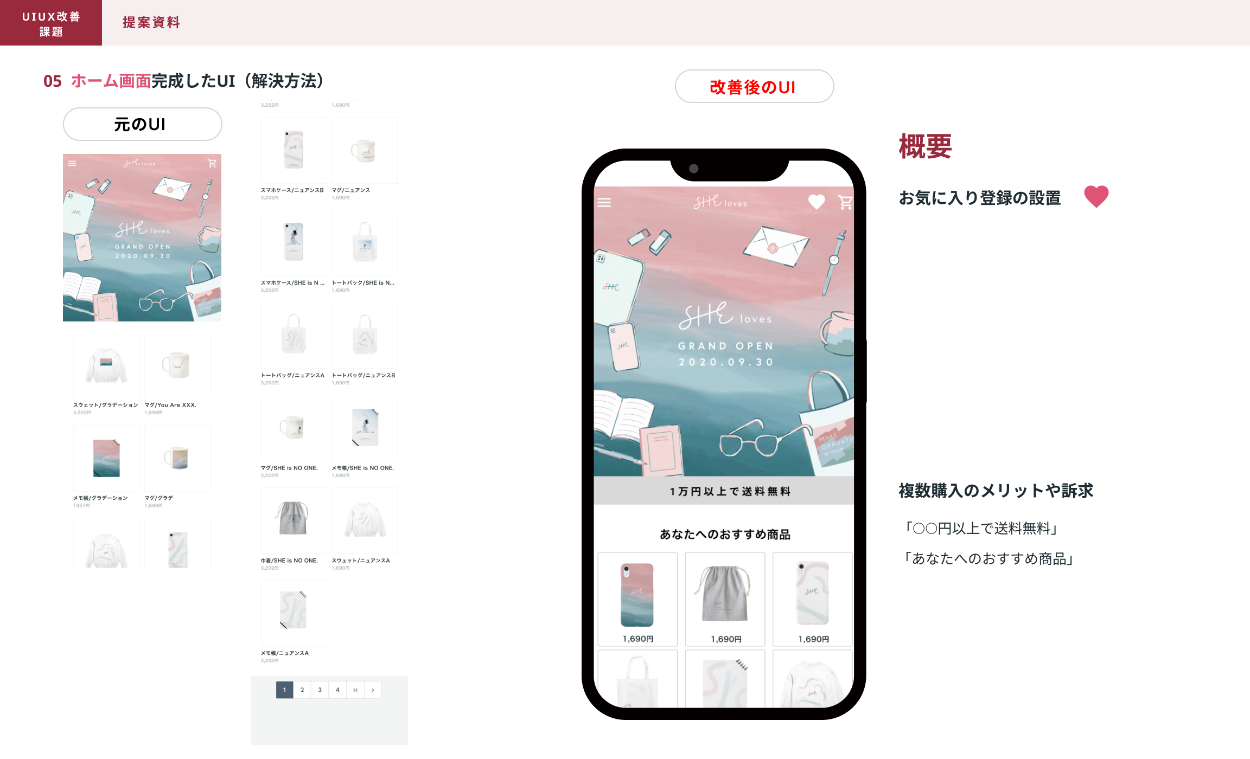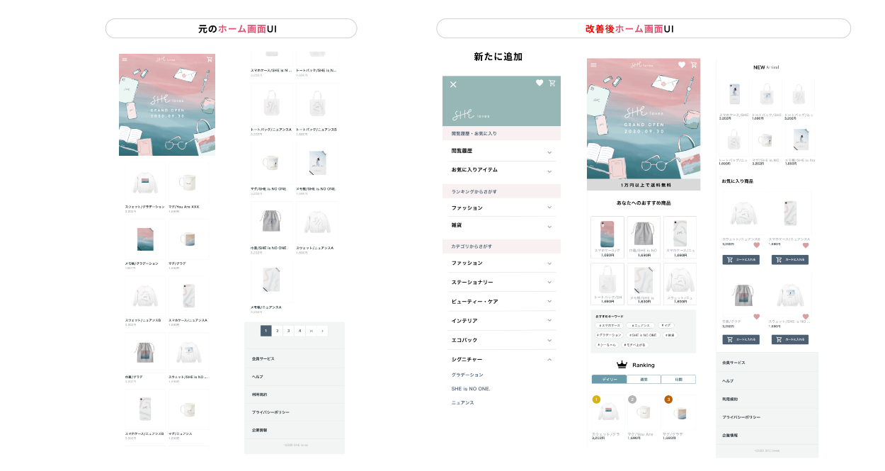 架空のECサイト「SHEloves」UIUX改善(SHElikes MULTI CREATOR COURSE の実践課題)