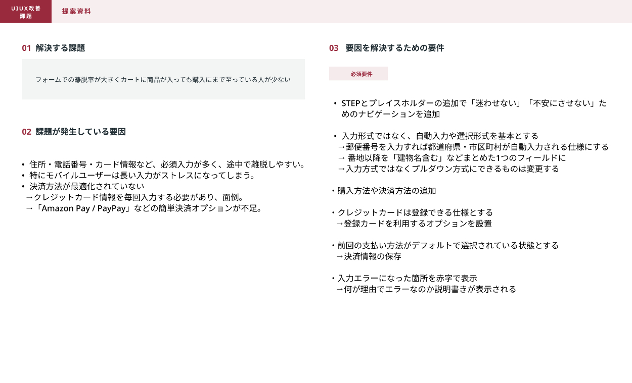 ・住所・電話番号・カード情報など、必須入力が多く、途中で離脱しやすい。