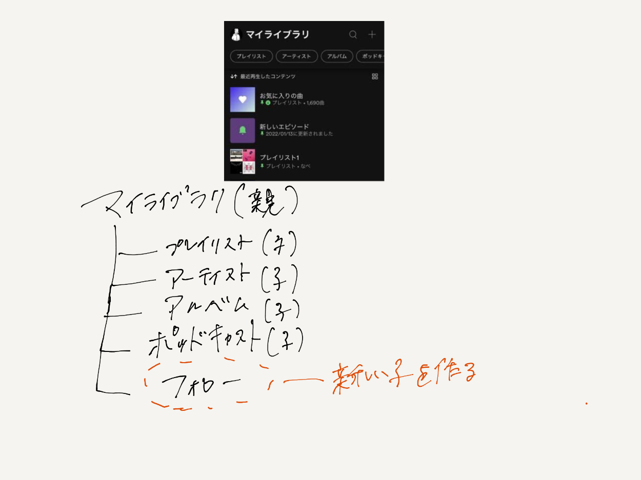ユーザー体験を書き出し、既存のSpotifyアプリのどこに今回のお題を入れたら良さそうかアイディアを出していく。