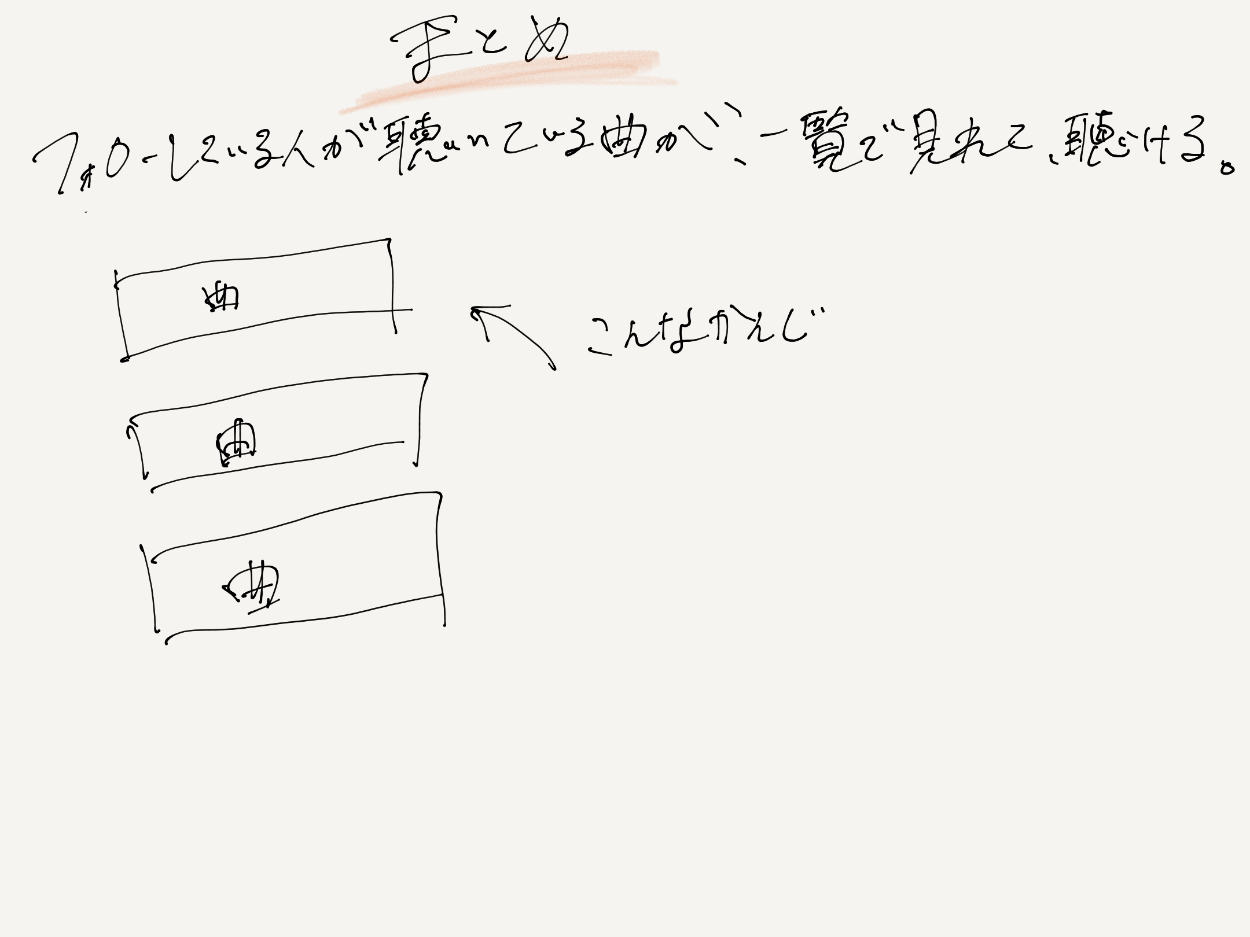 アイディアをさらに深掘り。聴いたらシェアされる方向に決定したが、プライバシーの設定が必要ということも頭に入れておく。