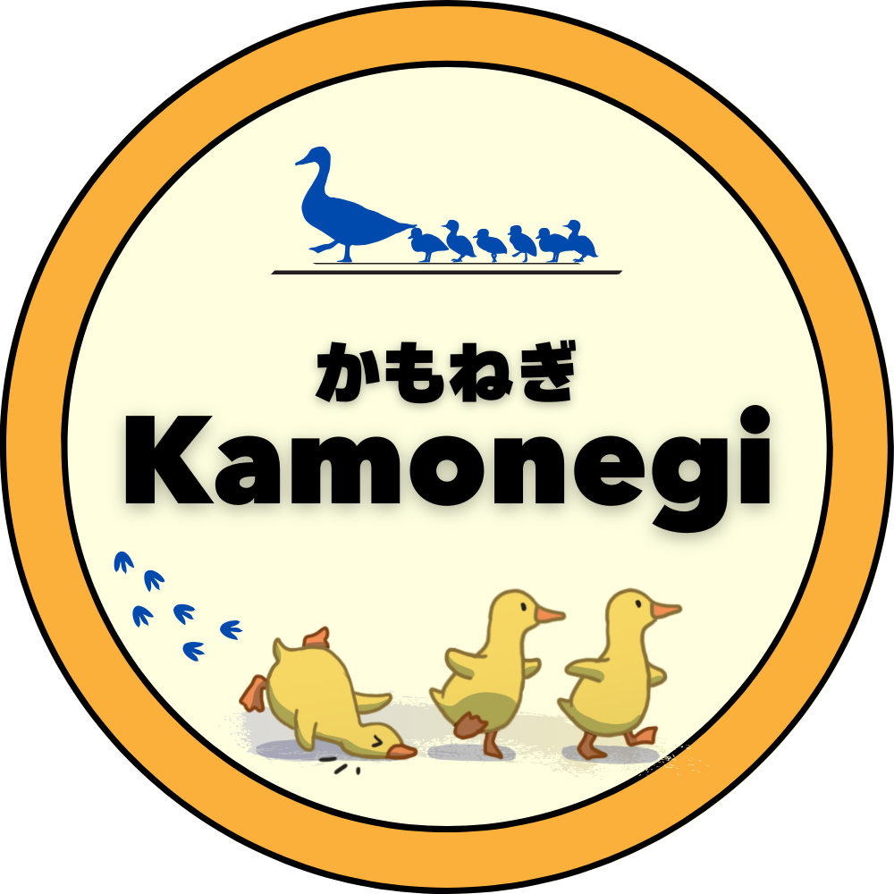 特徴:「KAMO」「NEGI」の頭文字KとNを幾何学的に組合せたデザイン