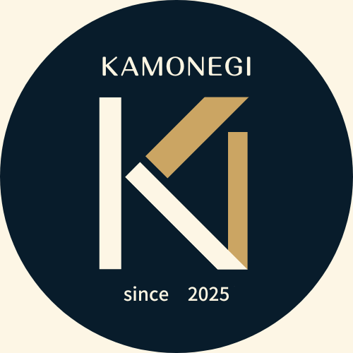 特徴:「KAMOK」「NEGI」の頭文字KとNを幾何学的に組合せたデザイン