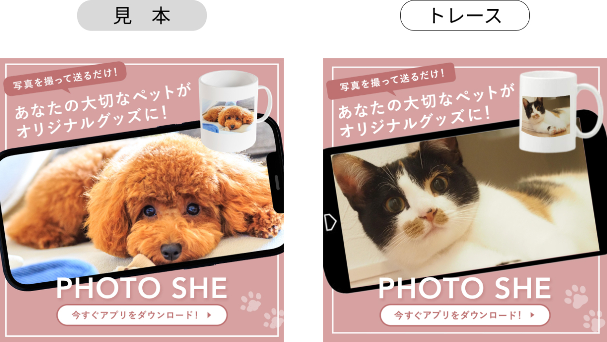 ・ペットの写真を撮るだけでオリジナルグッズができる、ということがデザインだけで