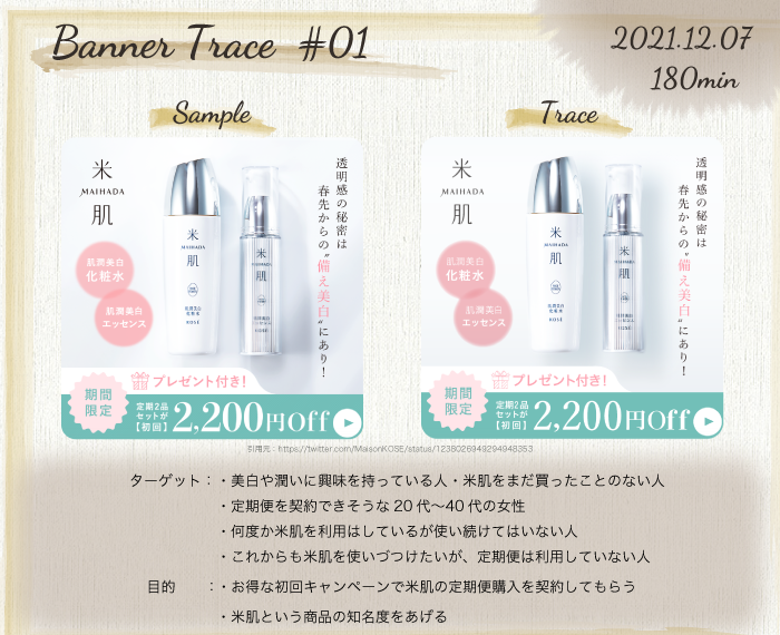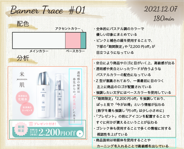 - トレースすることはもちろん、普段からバナーを意識的に見るよう習慣づけたいと思いました。