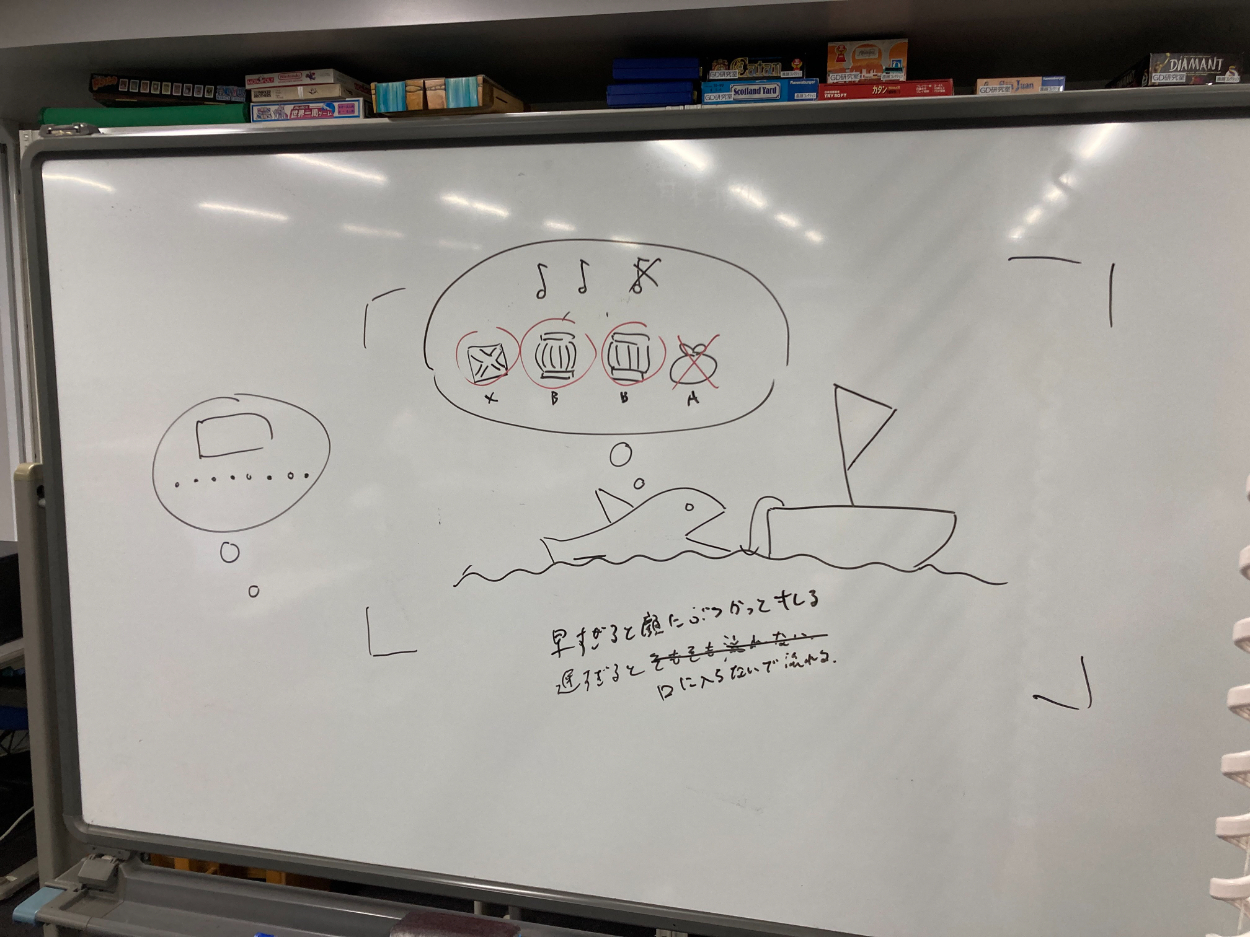 この「メロディの繰り返し」を「サメの要求」と「プレイヤーの入力」としてとらえることで、お題の提示・プレイヤーの操作を交互に行うターン制のようなリズムゲームが成立しました。