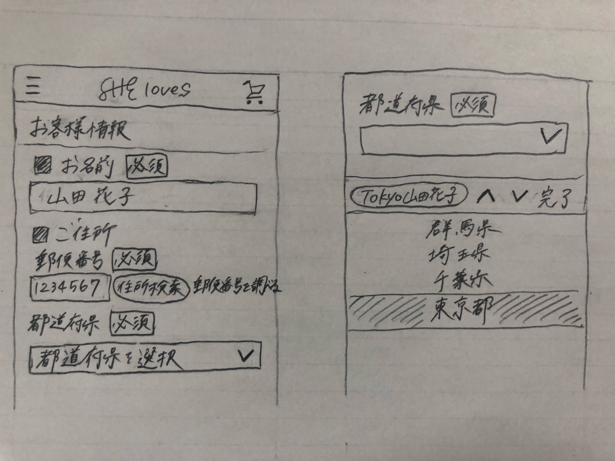 手書きで形にしながら必須要件を満たすUIを考えていき、Figmaを使ってUIを作成しました。(今回は必須要件のみ)