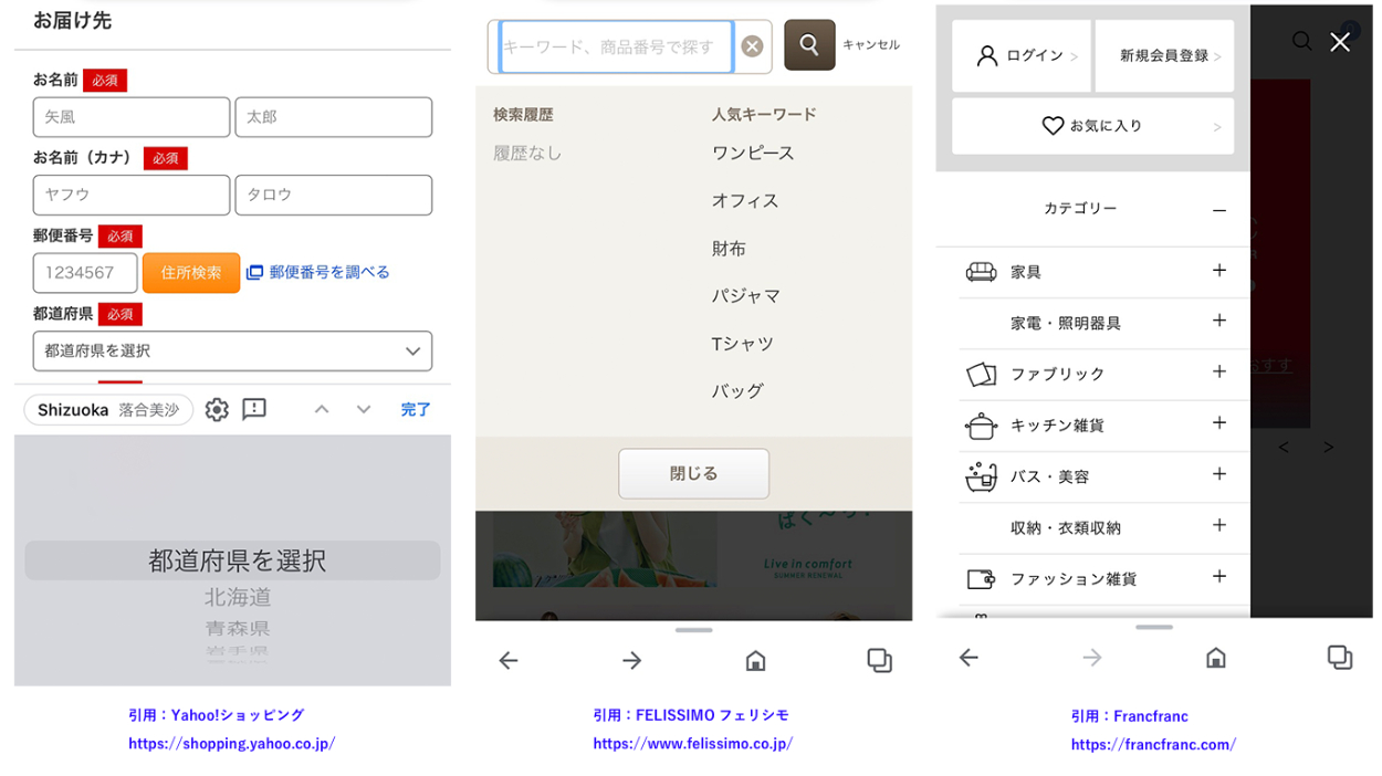 たくさんのECサイトを実際に利用しながら比較し、使いやすいと感じたUIを取り入れ、UIデザインの幅を広げました。