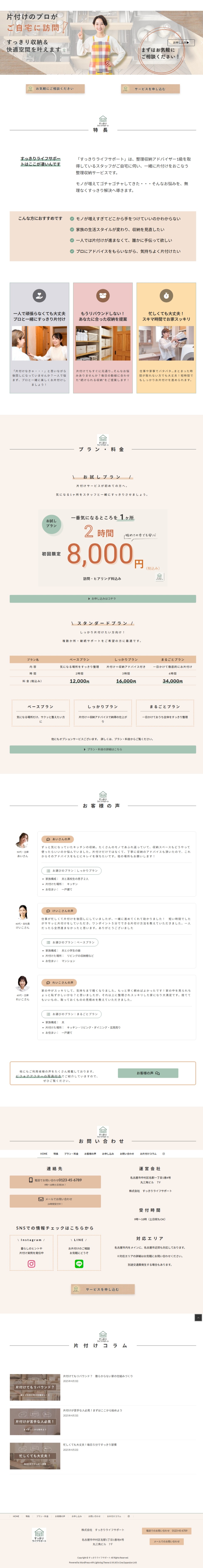 WordPressテーマ「Lightning」を使用し、架空の整理収納サービス会社のサイトを制作しました。
