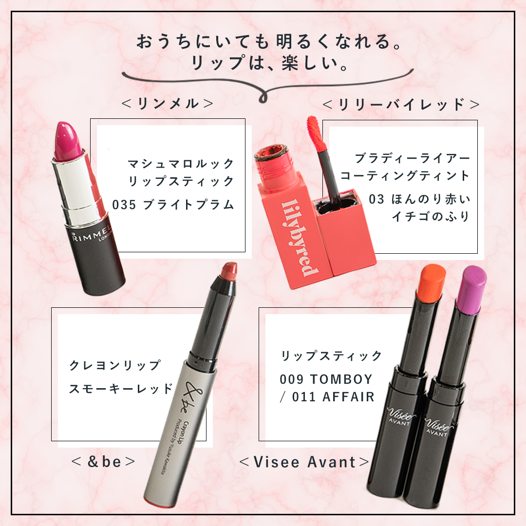 三越伊勢丹 meeco様のInstagram投稿用バナーを作成いたしました。 「自宅リップを普段ナチュラルなカラーがお好みの方もはっきりした色にチャレンジして楽しみましょう!」という趣旨のご依頼のため、全体的にナチュラルが好きな方に興味を持っていただけるものにしました。