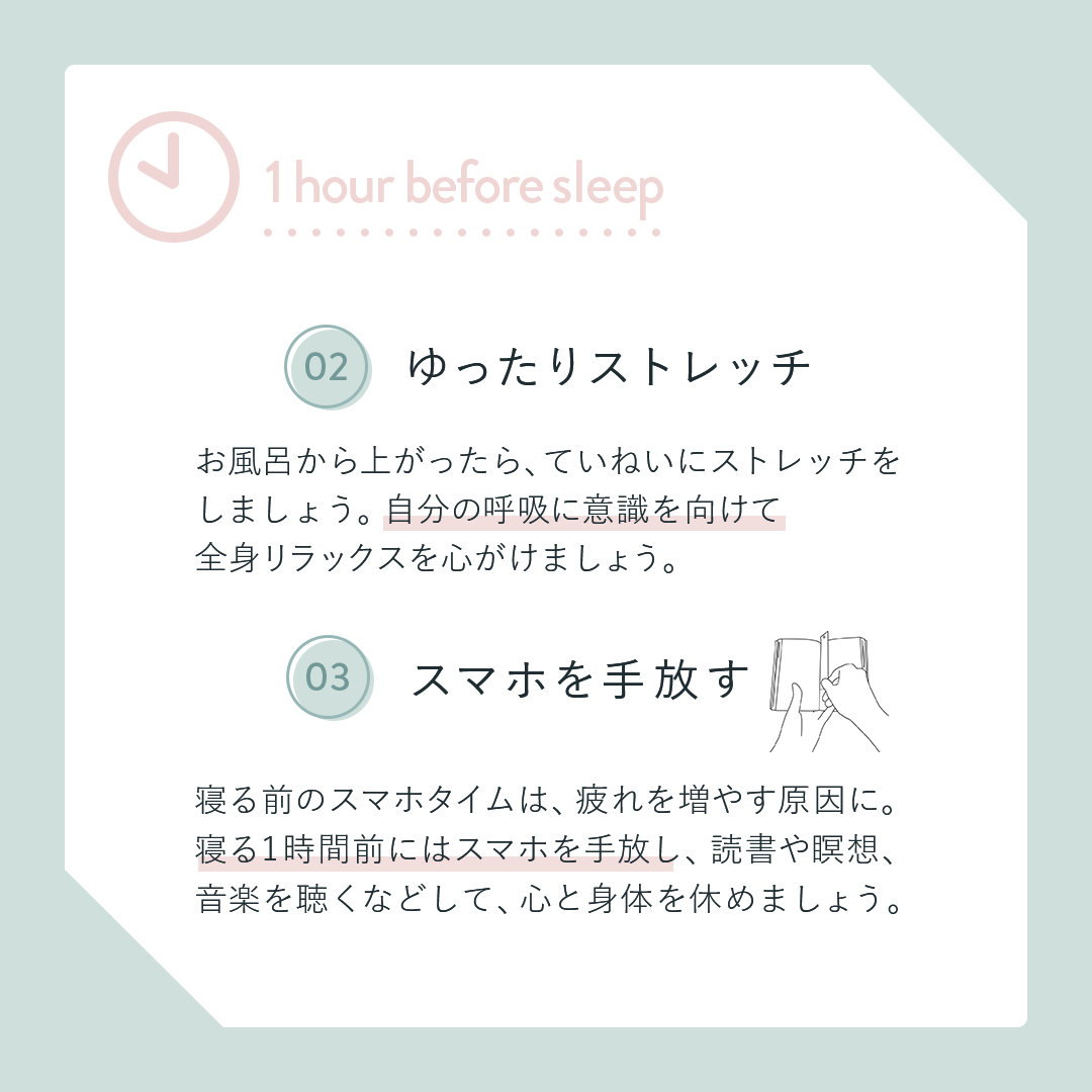 ・ターゲットが疲れている人なので、リラックス感のあるデザインにするため、それぞれの要素の間隔をあけたり字間を意識的に広げ、余白を感じさせる工夫をしました。