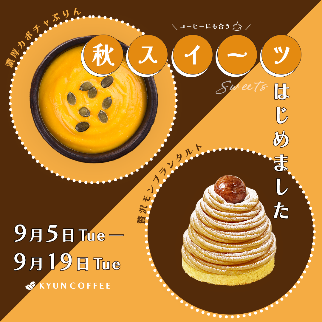 ・斜めのシンメトリーのレイアウトにし、秋スイーツ二つを並列して置くようにした。