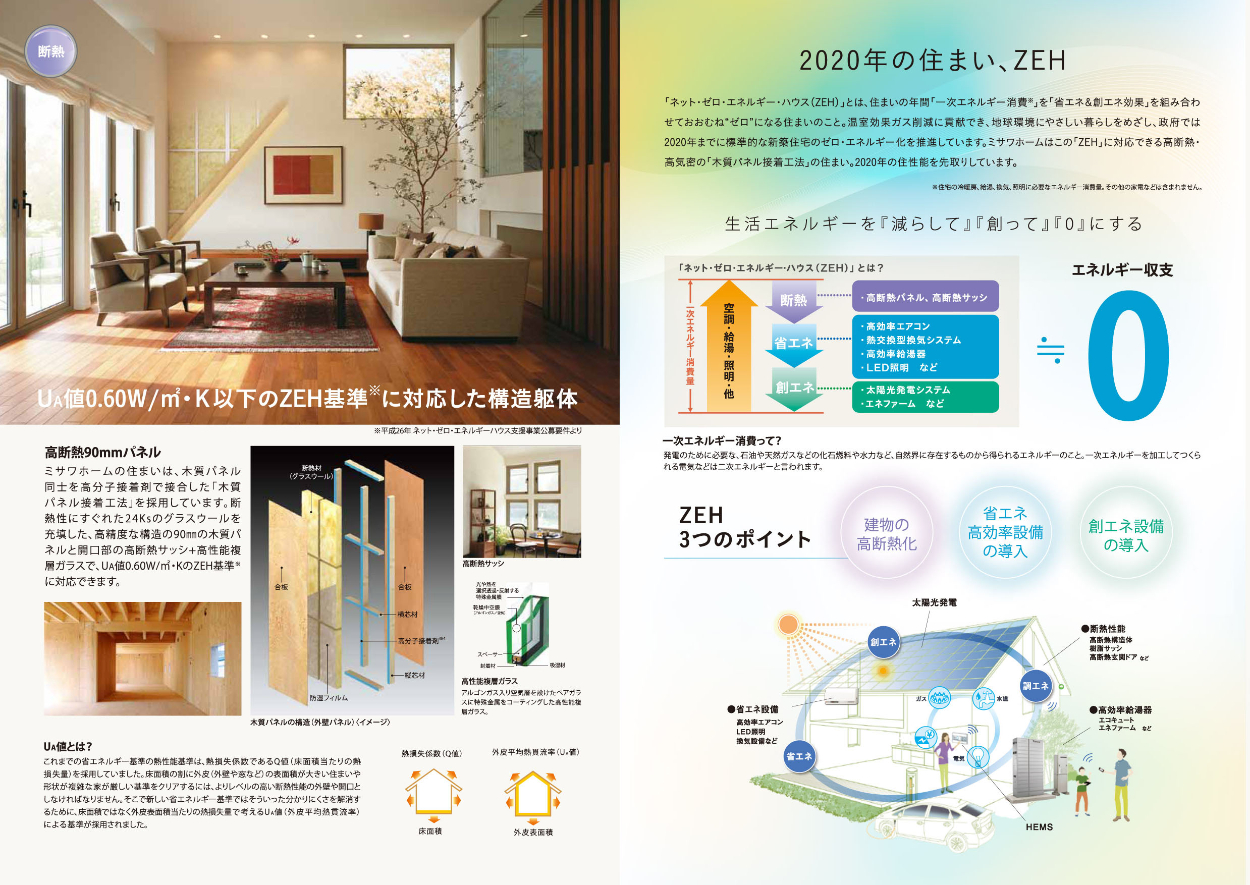 ミサワホームが推進するZEHのリーフレットを製作。ロゴまわりの飾りなど既存のロゴとZEHの主旨に沿ったカラーリングとデザインにしました。素材は既存のものや製作したものが混在しています。