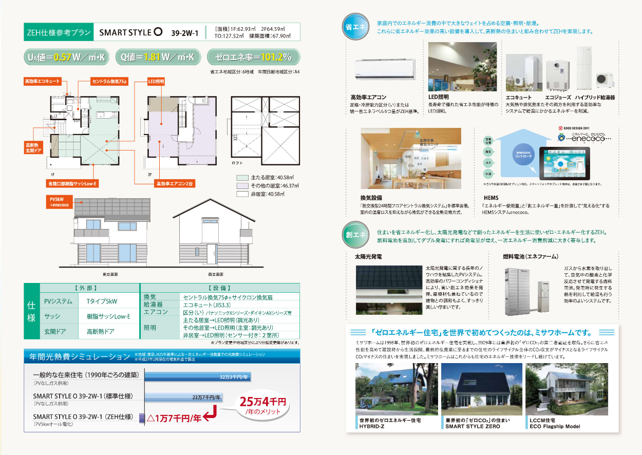 既存のカタログを一部流用しながらもイラストやインフォグラフィックなど修正が多くあり、情報が多いため、バランスやカラーリングに注意しながらレイアウトを行い、ZEHをイメージしたやさしいデザインに仕上げています。