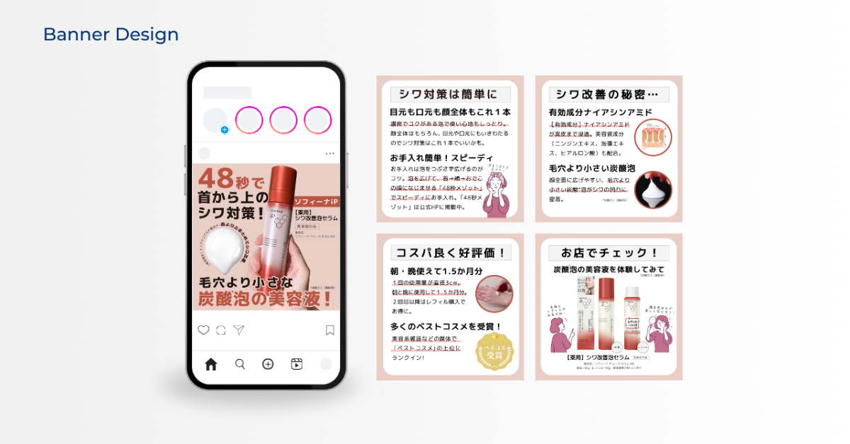 - ターゲットがSNSに投稿した口コミのようなデザインのバナーの制作をする