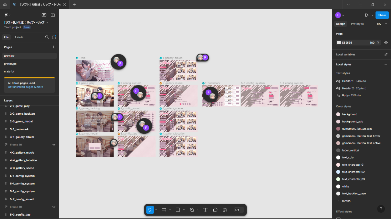 UI / UX inuskydesign web&グラフィックデザイナー OVERVIEW ノベルゲームの作成例です。 Figma を用いて、ディレクターからフィードバックを受けながら制作いたしました。